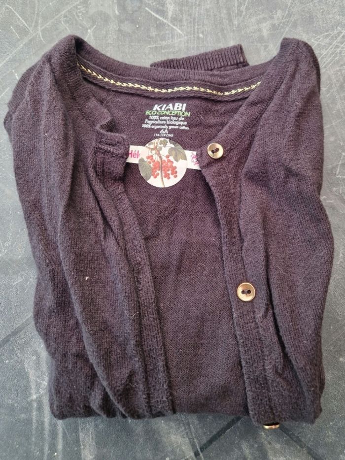 Gilet fille noir avec boutons dorés. Peu porté, bon état. Le nom de ma fille est sur l'étiquette mais difficile à enlever donc il restera.😅