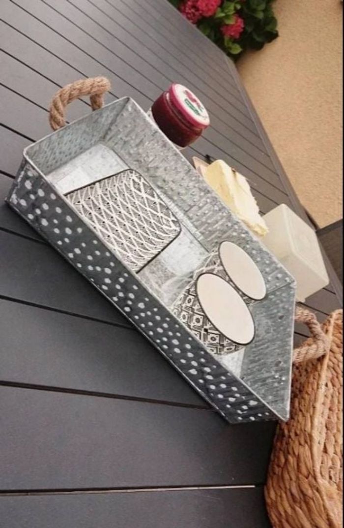 Plateau en cordes et métal (fer visible)