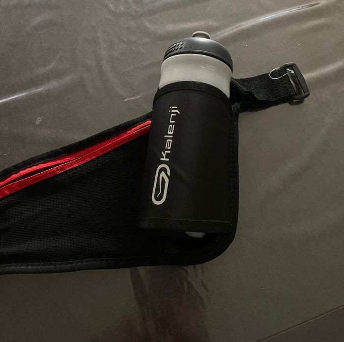 Ceinture d'hydratation avec sa goudre d'1/2 litre neuve Réglable depuis petite largeur à plus grande avec sa poche pour portable clefs et autre
