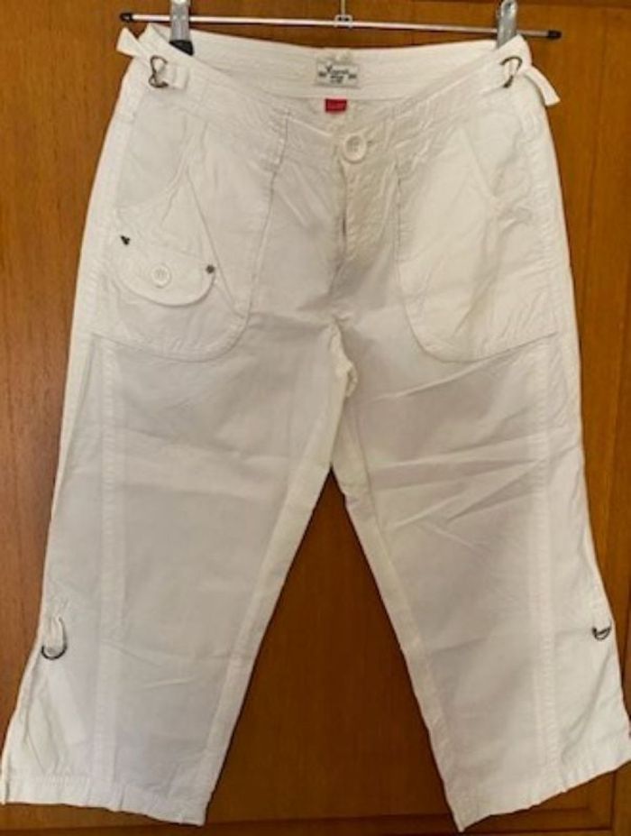 Corsaire Esprit passants cordons d'aisance sur les côtés 2 poches latérales 1 poche cuisse avec bouton 2 poches cavalières arrière avec boutons retroussable longueur totale 78 cm longueur retroussé 55 cm