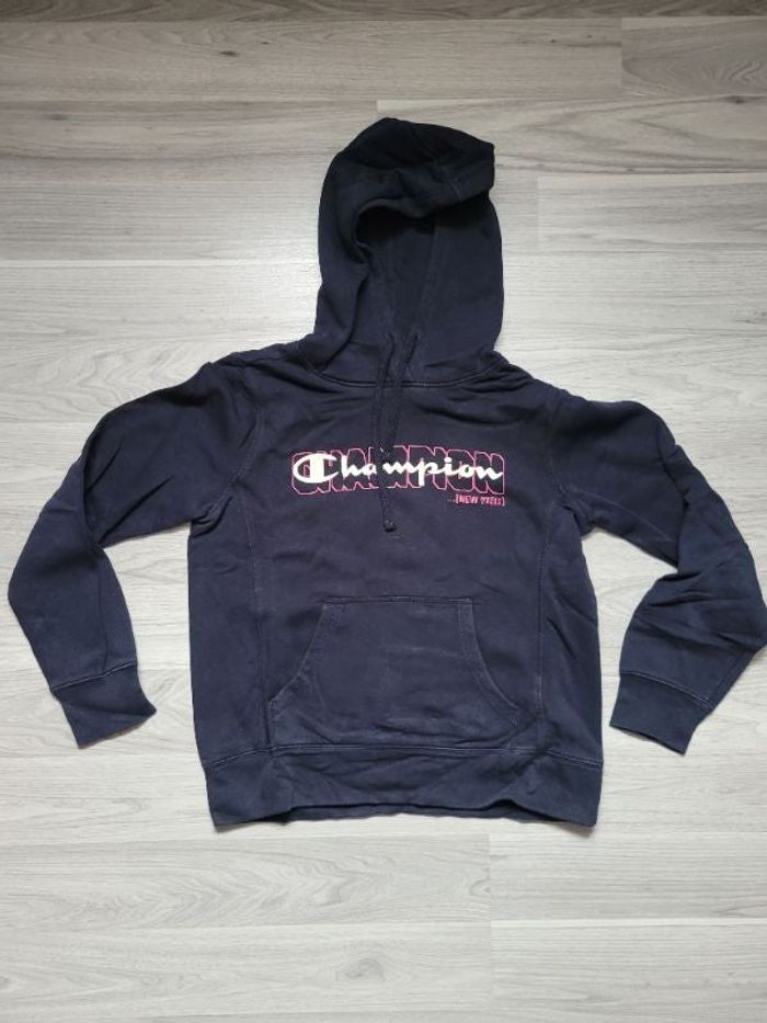 Sweat à capuche de couleur bleu marine, rose et blanc, de taille M et de marque Champion. En très bon état, aucun défauts N'hésitez pas à me contactez