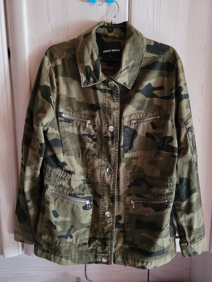 Vends veste en jean de style militaire, de couleur kaki/noir/vert de taille M et de marque Tally Weijl. Elle a été mise qu'une fois. Comme neuve Sangle pour resserrer à la taille N'hésitez pas à me contactez