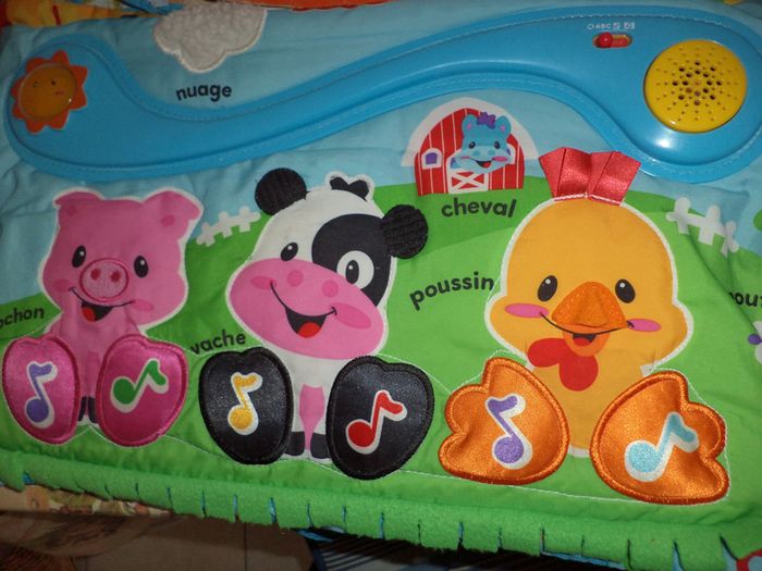 fait le bruit des animaux .chanson.et le soleil s illumine peut se mettre au bout du lit pour que l enfant joue avec ses pieds ou ses mains