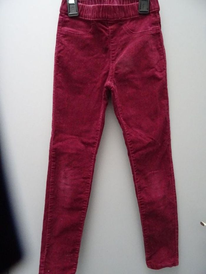 Pantalon en velours milleraies, deux poches arrières, taille élastique. 98% coton, 2% élasthanne. Très peu porté. N'hésitez pas à visiter mon dressing, j'ai d'autres articles en taille 8 ans.
