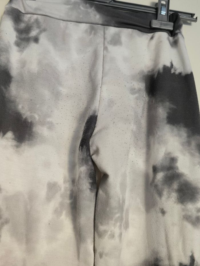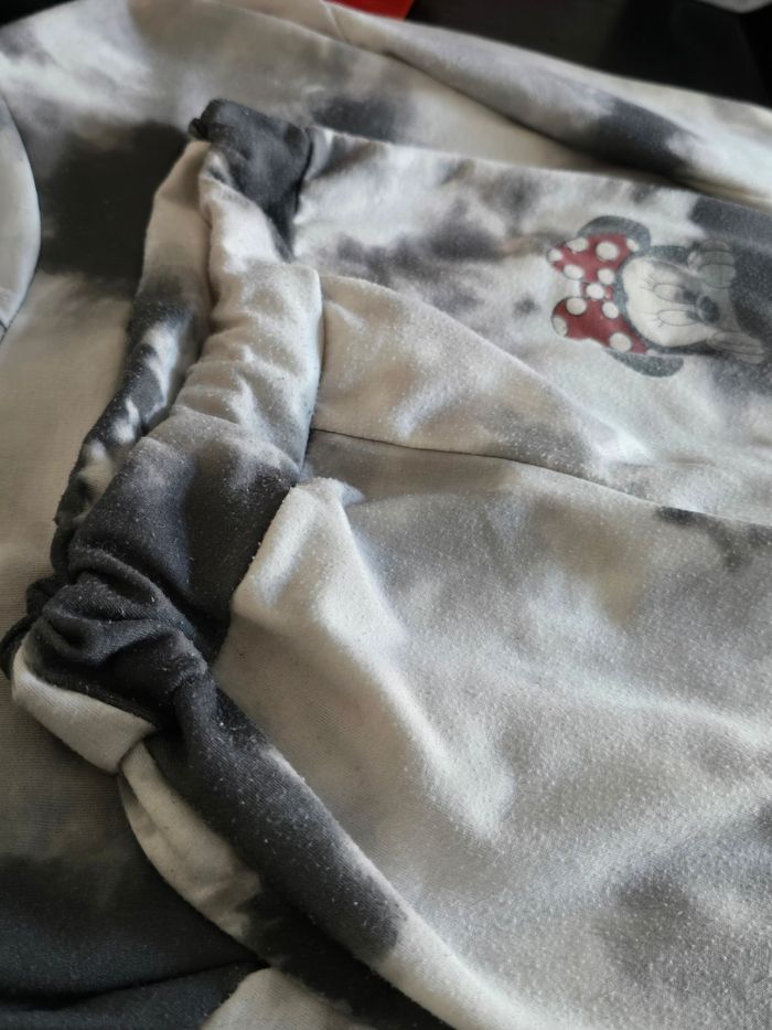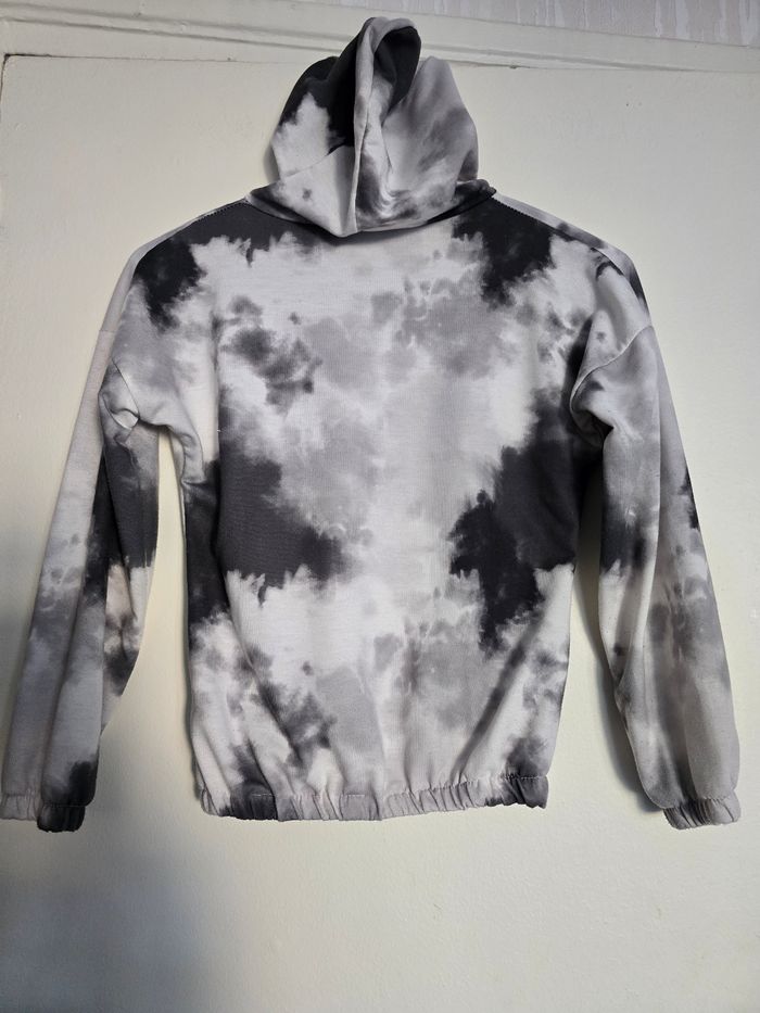 Enssemble survêtement minie, effet marbré noir et gris. Taille élastique, veste a capuche Matière légère, quelques bouloches sur l'ensemble Taille : 12 ans