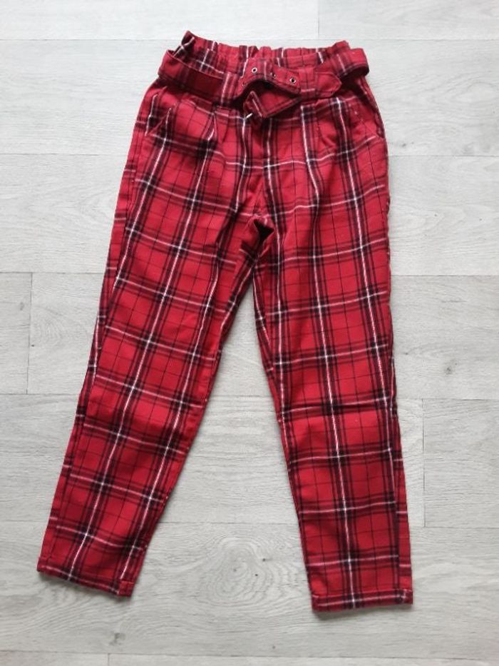 Pantalon rouge a carreaux avec ceinture Quelques bouloches par rapport à la matière Taille 9 ans #vetementfille9ans