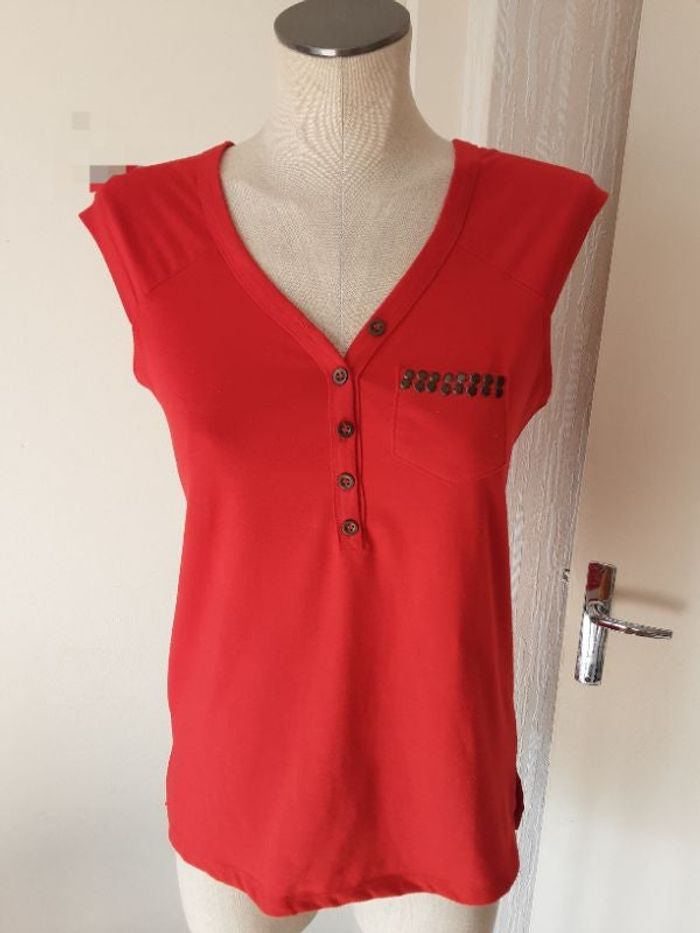 Tee-shirt rouge avec bouton devant Possibilité d'ouvrir Taille : M #vêtementfemme
