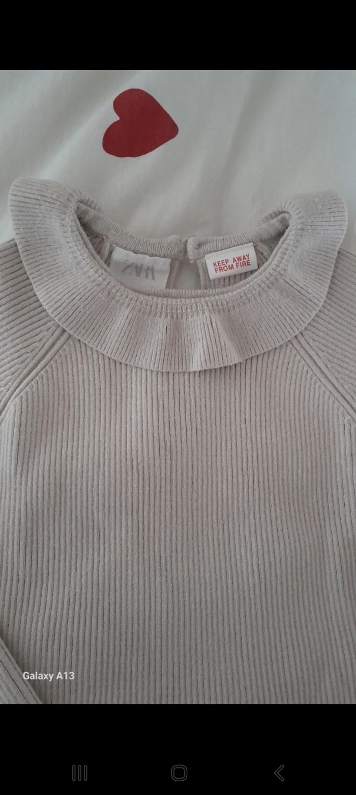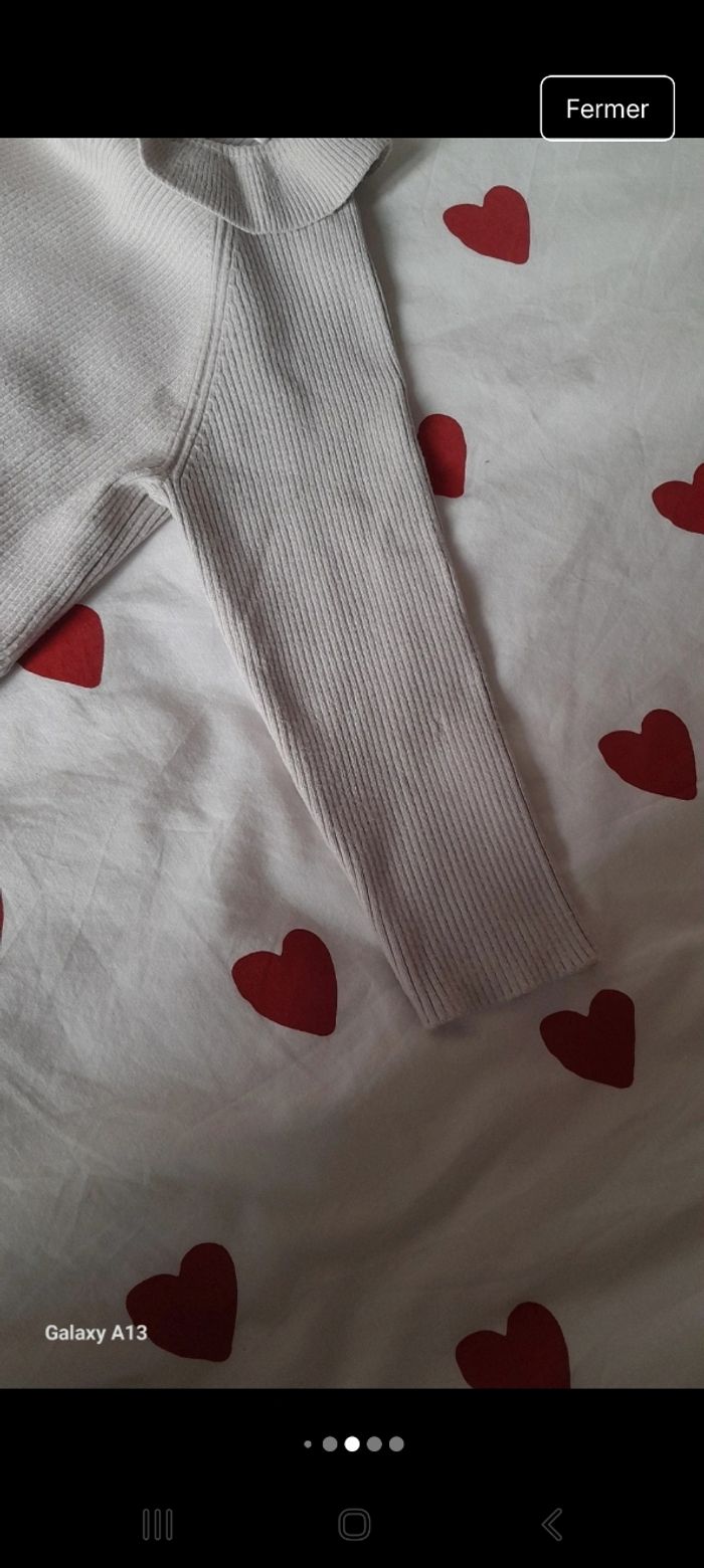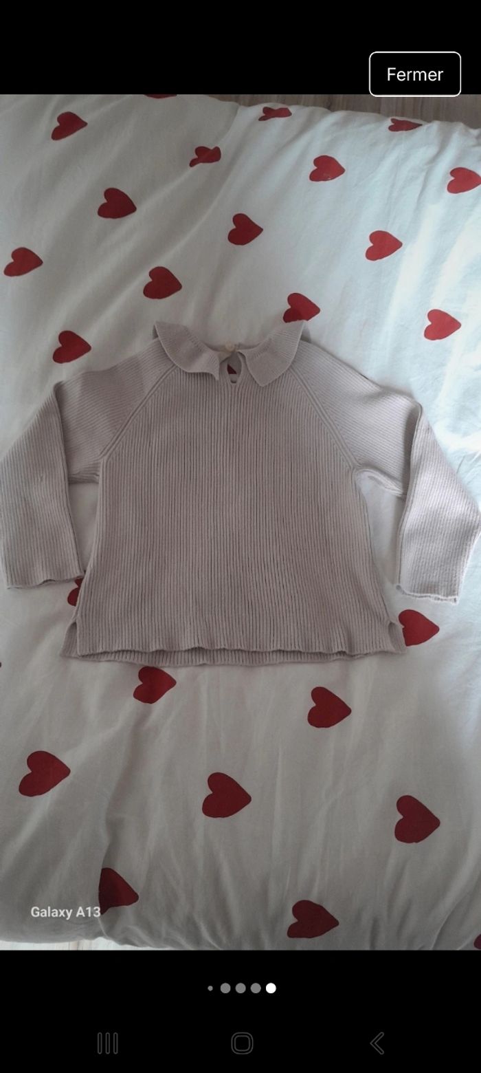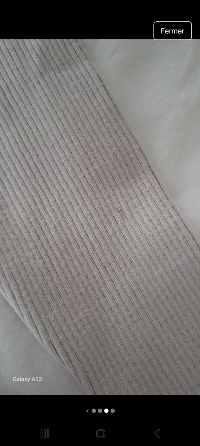 Pull fin gris clair beige, très peu porté mais présence d'un accro qui a été recousu sur la manche, peu visible