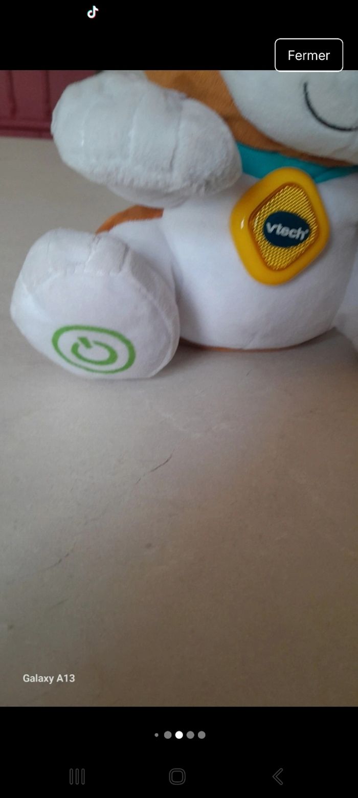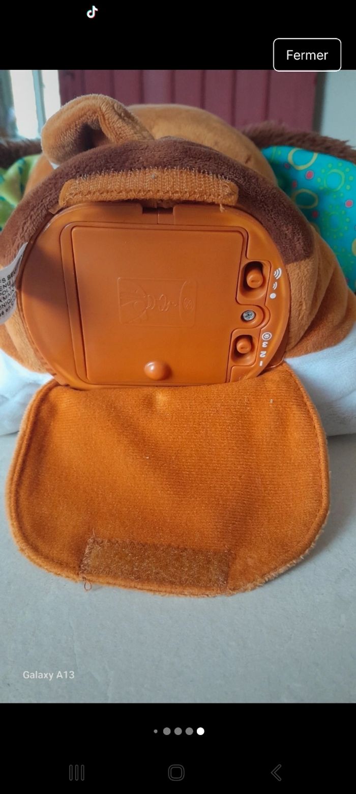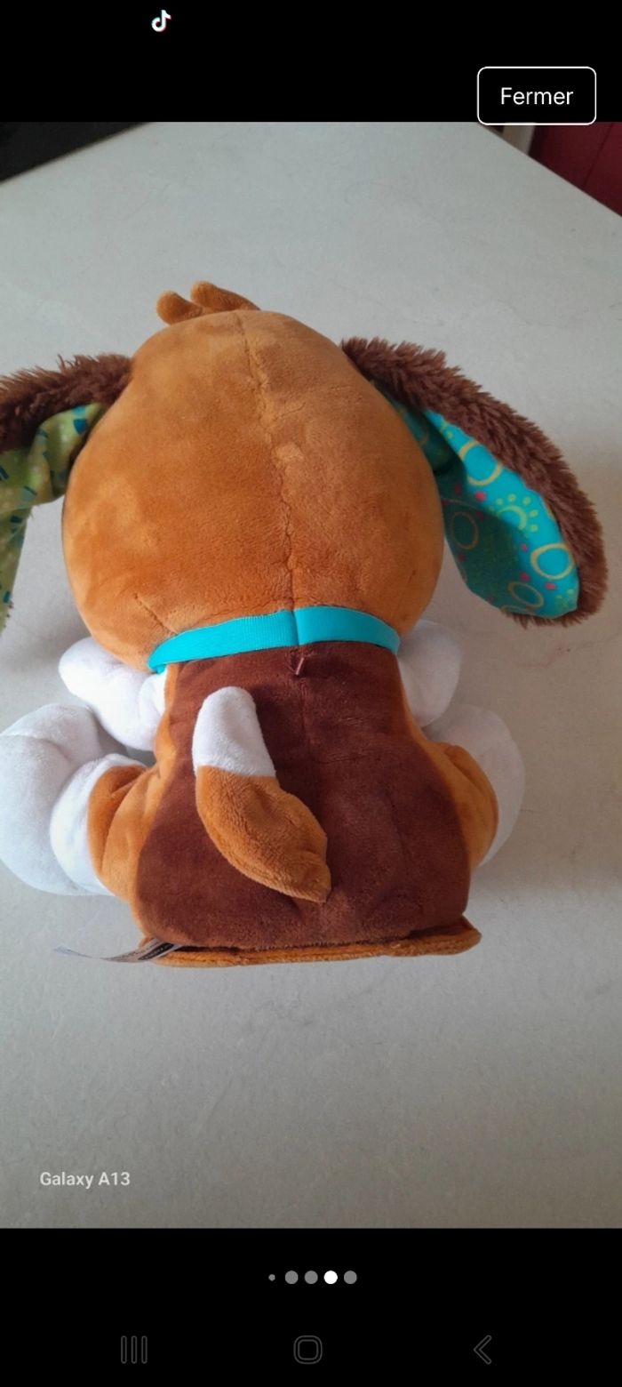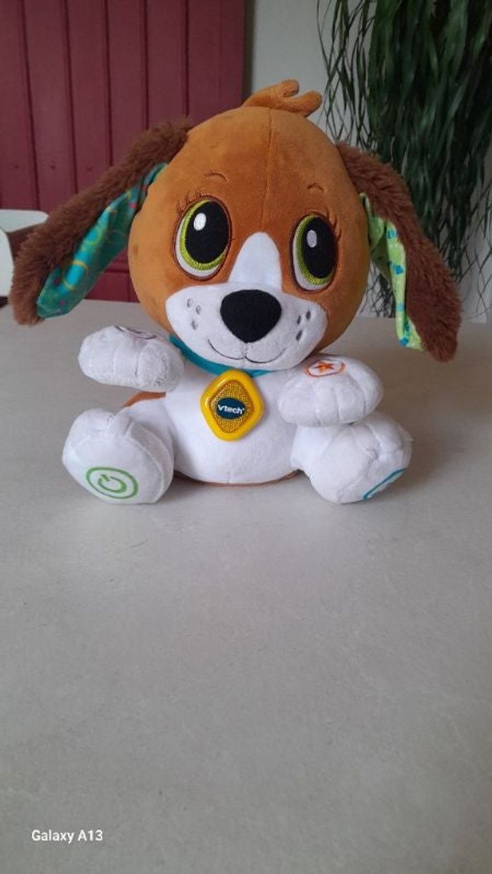 Petit chien interactif qui bouge et remue ses oreilles. Trois niveaux de difficultés et volume réglable. Interactif il chante, répète et questionne. En excellent état, peu servi