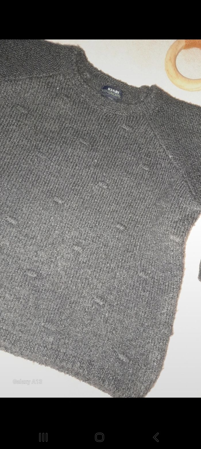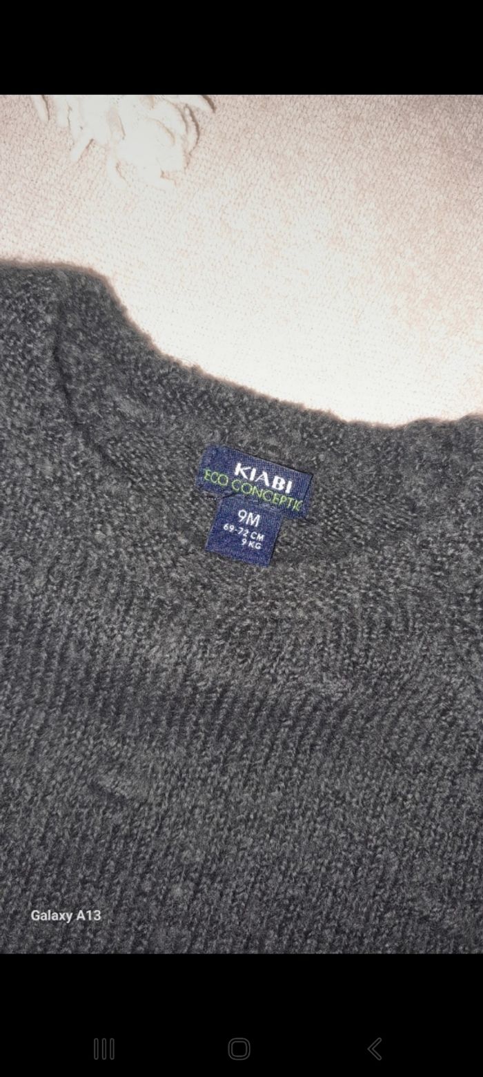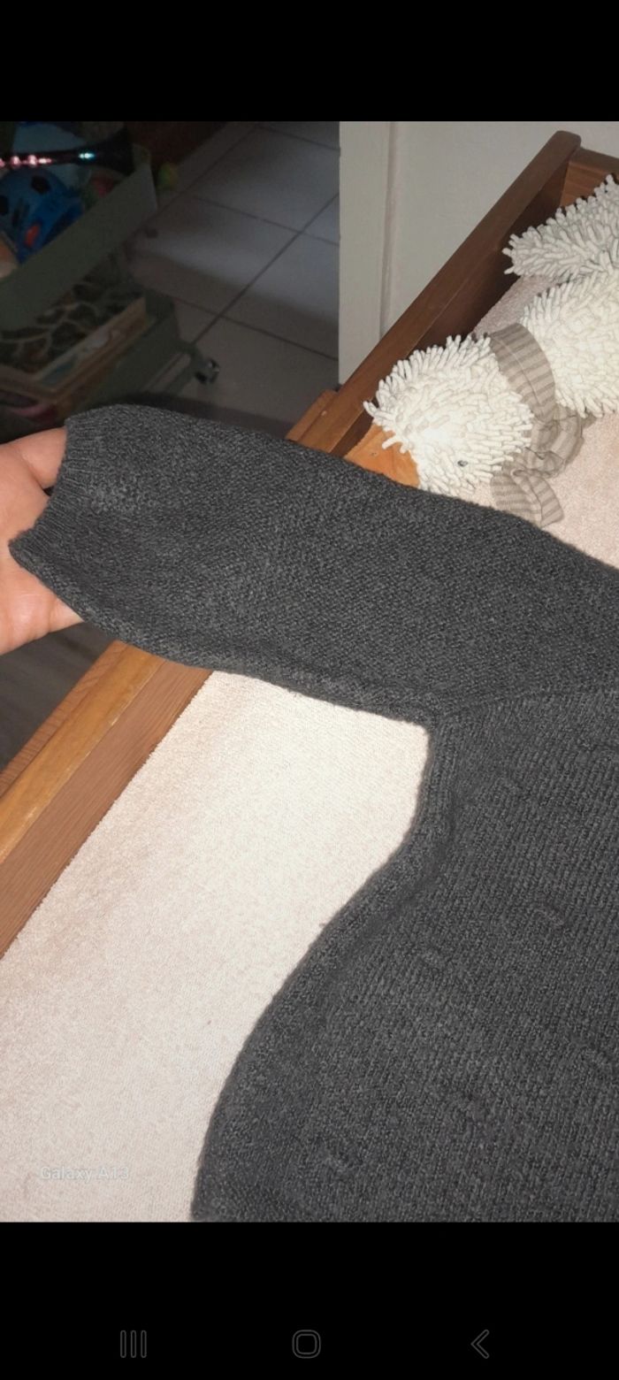 Pull gris foncé avec des manches un peu larges. Taille grand (12 mois). Peu porté. En parfait état
