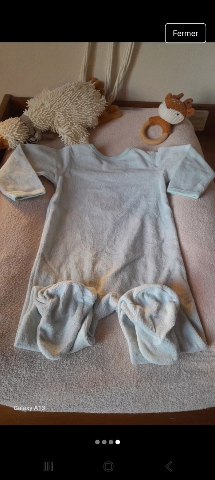 Pyjama en velours, couleur turquoise clair, peu porté, en parfait état Taille 80cm ou 12/18 mois