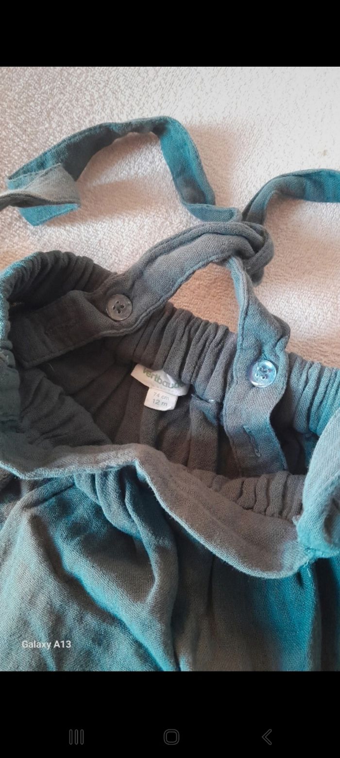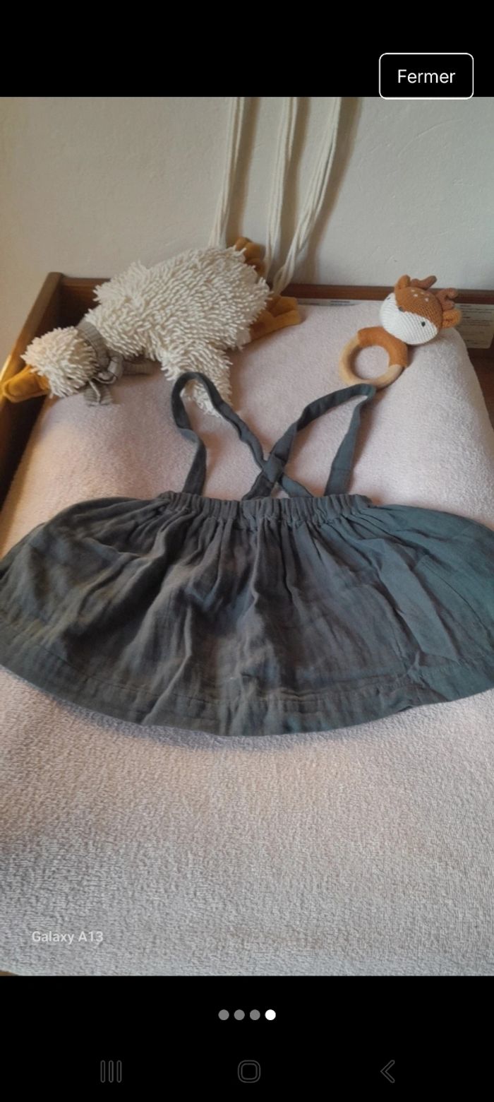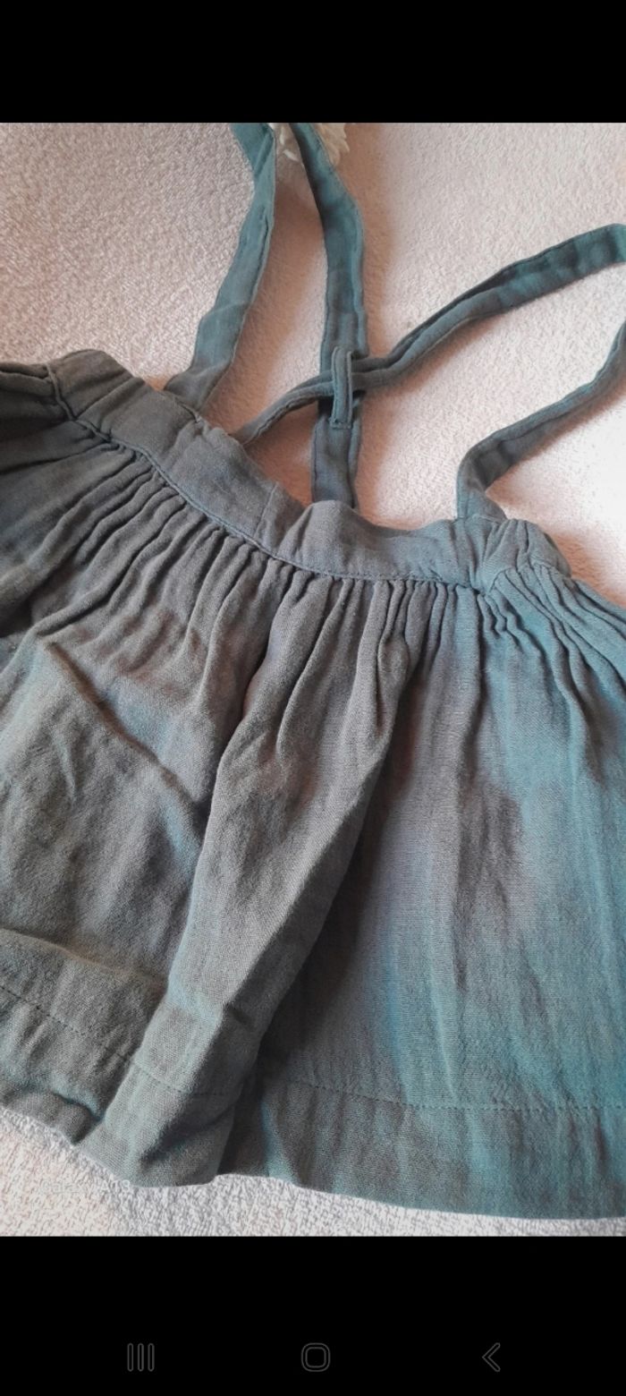 Jupe salopette avec bretelles réglables, en gaze de coton, portée une fois, comme neuve Coloris gris vert foncé
