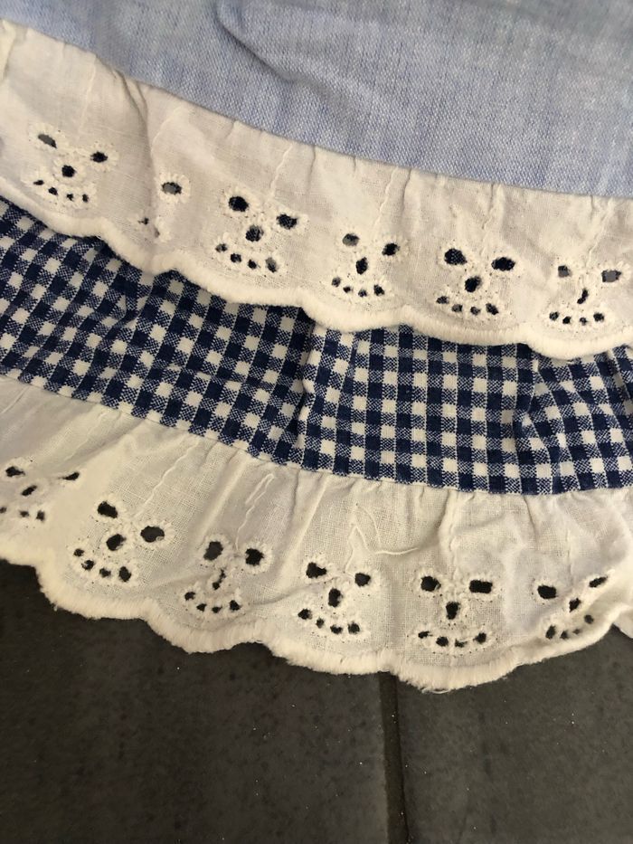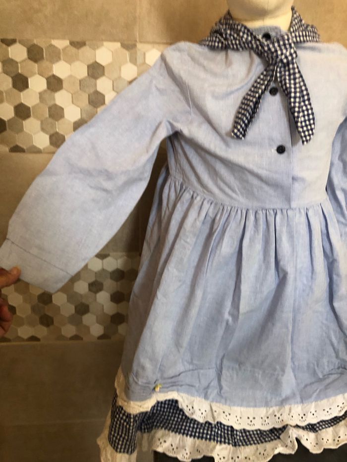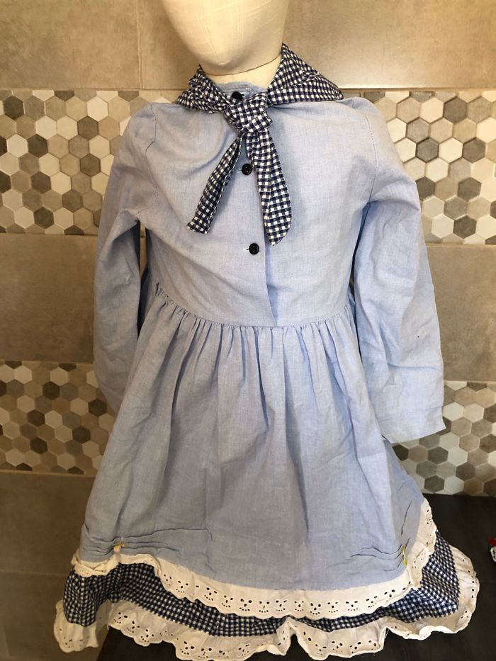 Robe 👗 Matière coton Couleur bleu blanc avec des petits carreaux et de la dentelle Taille 8 ans Bon état