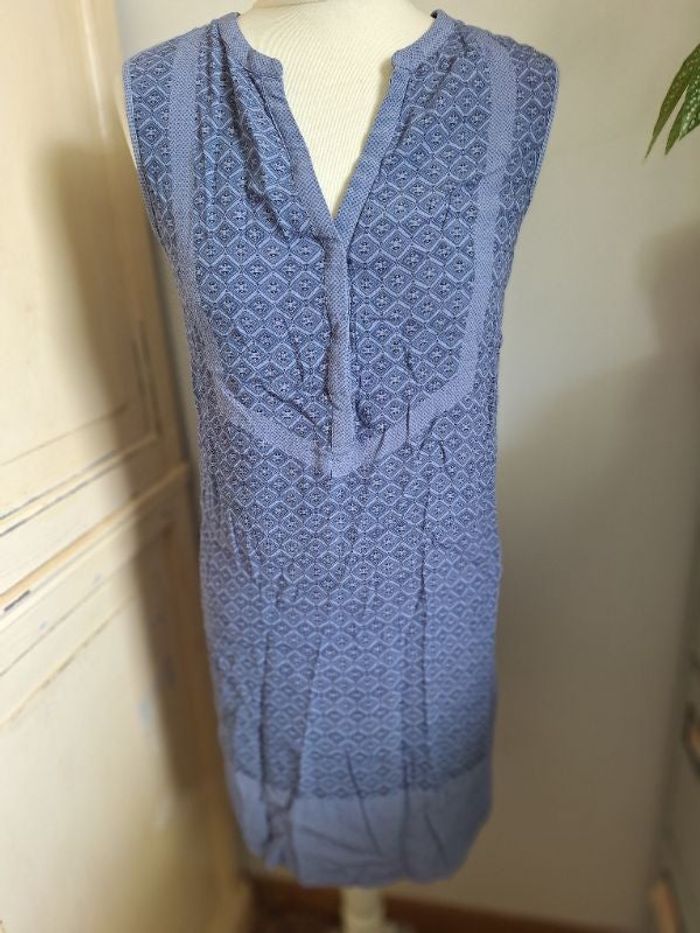 Robe fluide taille 2 légère très agréable se ferme devant avec des boutons pressions N'hésitez pas à me poser des questions Je ne suis pas responsable des pertes, des vols et des avaries des transporteurs.
