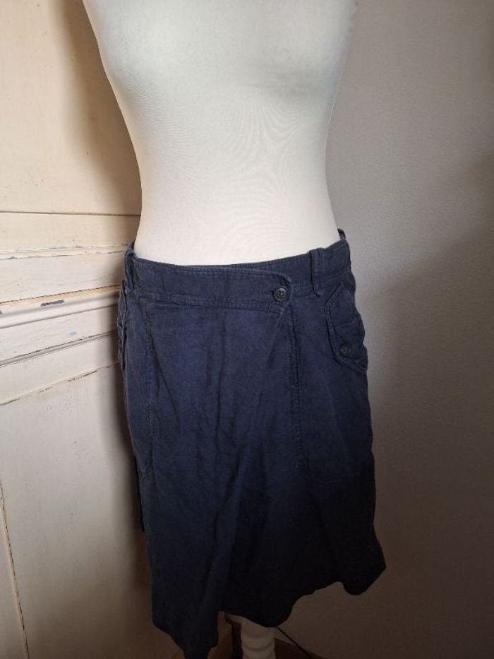 Jupe droite bleue taille 40 lin légère agréable à porter longueur 50 cm N'hésitez pas à me poser des questions Je ne suis pas responsable des pertes, des vols et des avaries des transporteurs.