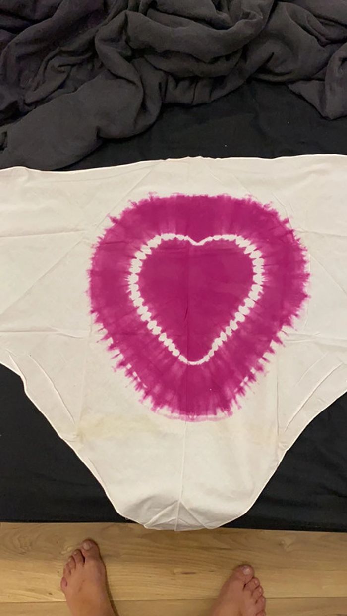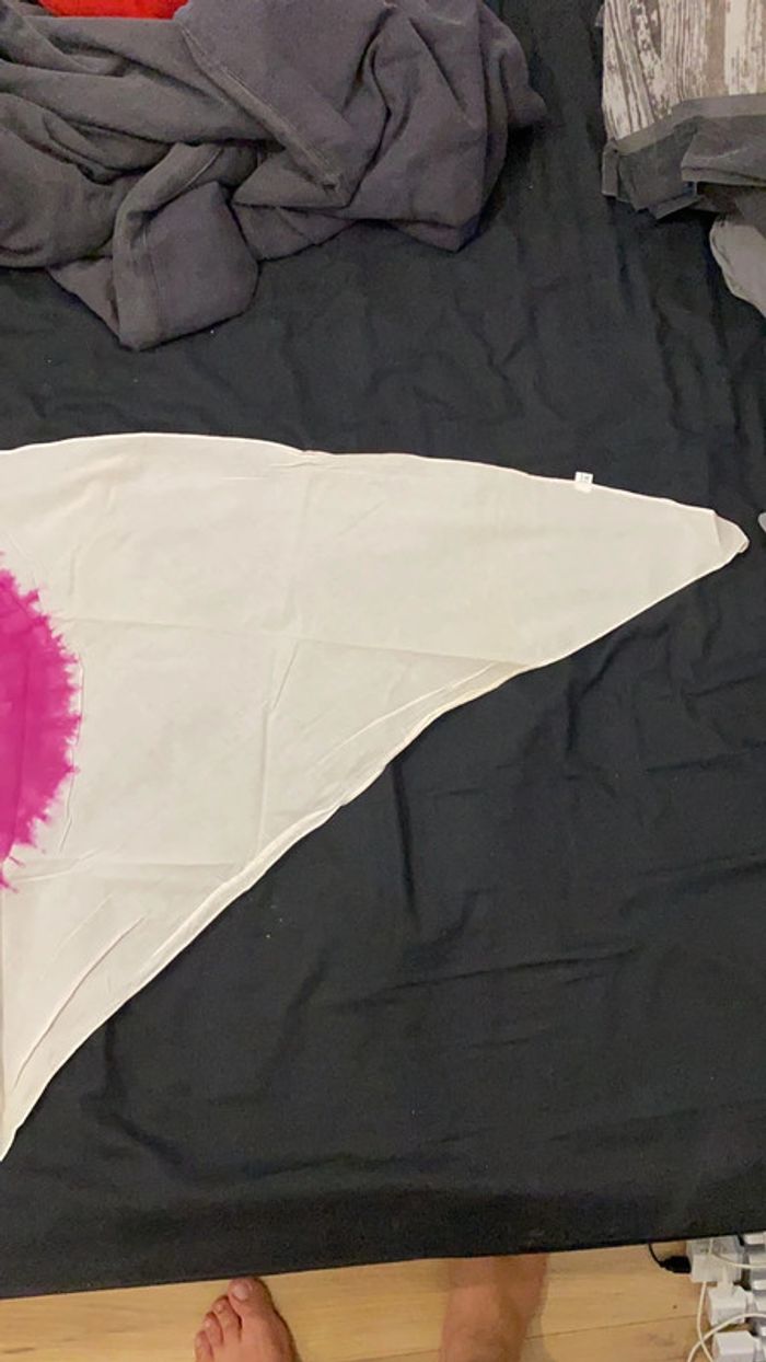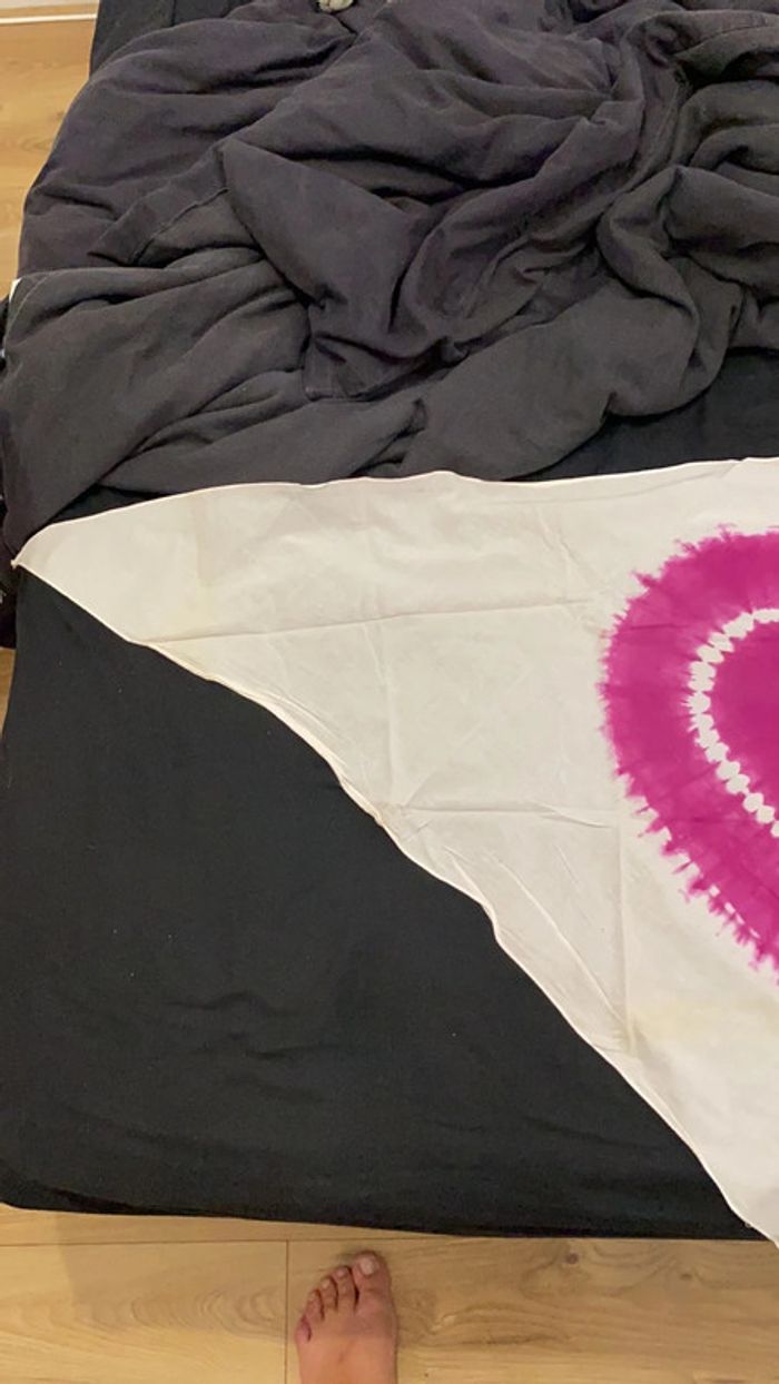 Bonjour bonsoir Je vend se paréo en forme de triangle de couleur blanc et rose avec un forme de cœur au milieu, (Pour cacher une jambe) Taille M Envoie rapide