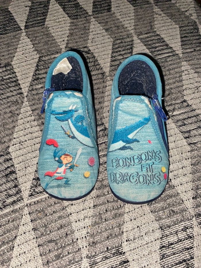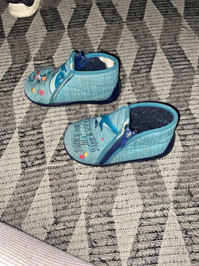 Bonjour bonsoir Je vend cette paire de chausson Taille 22 Sous la semelle indication pis droit ou gauche Se ferme avec fermeture éclaire Légèrement usé voir photo