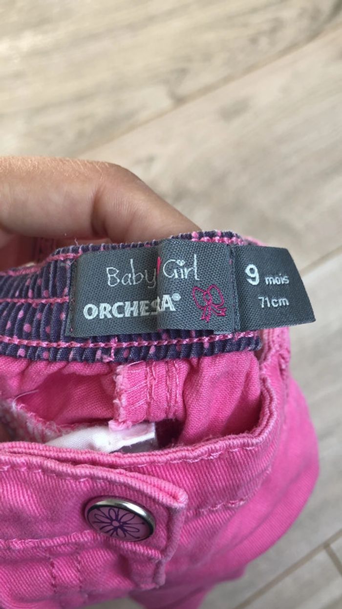 Article: ✨jean Couleur:🎨rose Taille:📏9 mois📏 Marque:🌈orchestra État :🌞tres bon etat🌞 N hésitez pas à consulter mon dressing, des remises sont activées des deux articles.🙂 Envoie rapide et soigné 🌿 Maison non fumeur ✨ 🦄Abonnez-vous, des nouveautés sont régulièrement ajoutées 🦄 #payrat15emelinehabits9mois