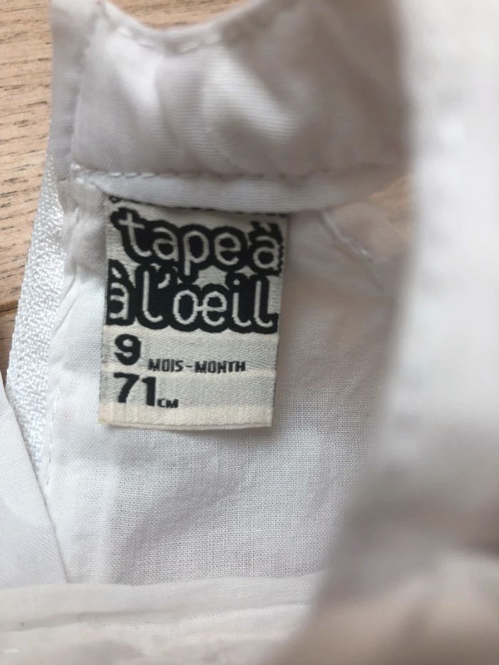 Article: ✨robe✨ Couleur:🎨blanc🎨 Taille:📏9 mois📏 Marque:🌈tap. 🌈 État :🌞tres bon etat🌞 N hésitez pas à consulter mon dressing, des remises sont activées des deux articles.🙂 Envoie rapide et soigné 🌿 Maison non fumeur ✨ 🦄Abonnez-vous, des nouveautés sont régulièrement ajoutées 🦄 #payrat15emelinehabits9mois