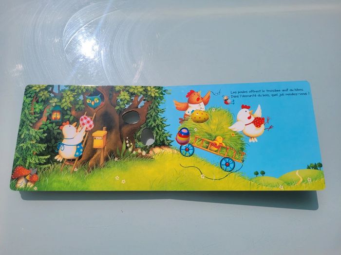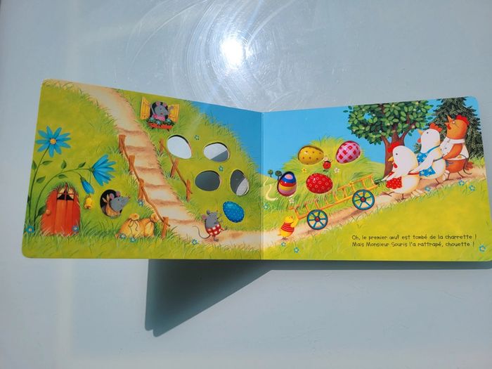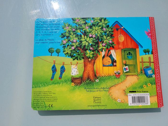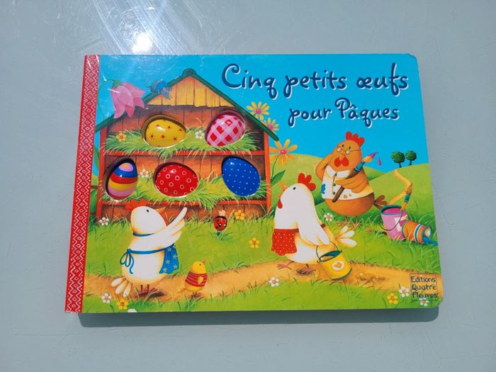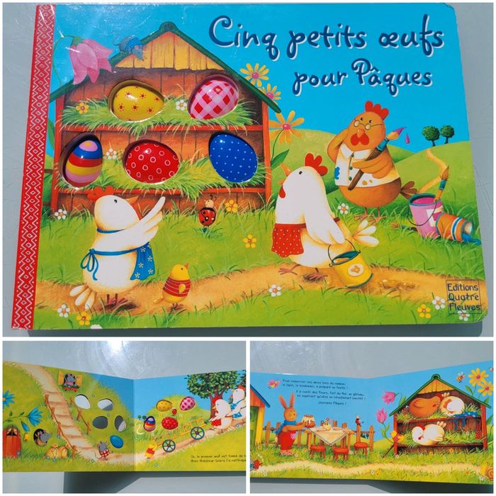 ÉDITIONS QUATRE FLEUVES CINQ PETITS OEUFS POUR PÂQUES LIVRE TOUT CARTON Les livres pour compter : une série de livres tout-carton percés de trous et enrichis d'éléments pour apprendre à compter du bout des doigts... Cette année, les cloches sont parties en vacances ! Heureusement, les poules vont distribuer les œufs. 5, 4, 3, 2, 1, pour qui sera le prochain ? Très bon état Mes autres livres quatre fleuves #quatrefleuvesmooglou Mes autres livres enfants : #livreenfantmooglou