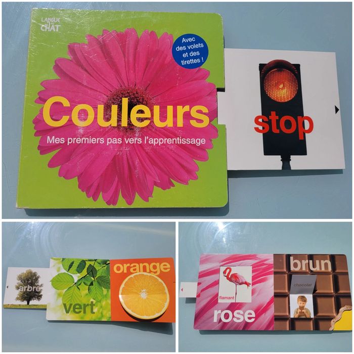 ÉDITIONS LANGUE AU CHAT AVEC DES VOLETS ET DES TIRETTES COULEURS MES PREMIERS PAS VERS L'APPRENTISSAGE Soulever, déplier, tirer... et découvrir une surprise à chaque page ! Les premiers pas vers l'apprentissage se font dans la joie grâce à cet imagier au concept tout à fait original. Petits et grands seront vite conquis ! Dimensions 20.5 x 1.6 x 20.6 cm Couverture un peu usée, intérieur en bon voir très bon état Mes autres livres enfants : #livreenfantmooglou