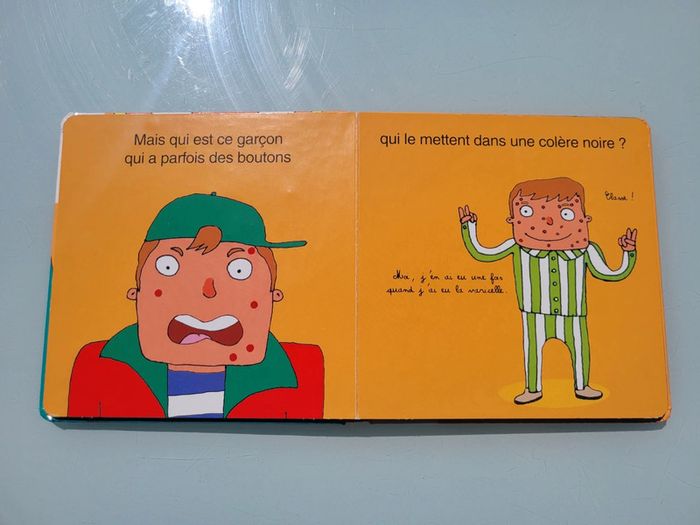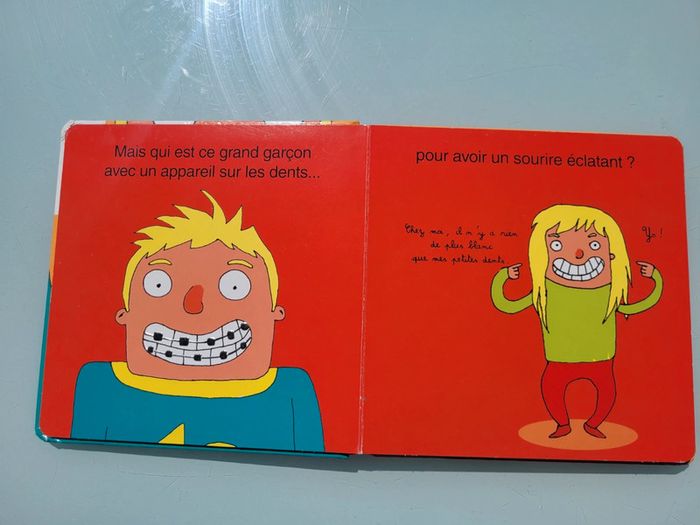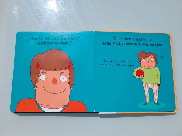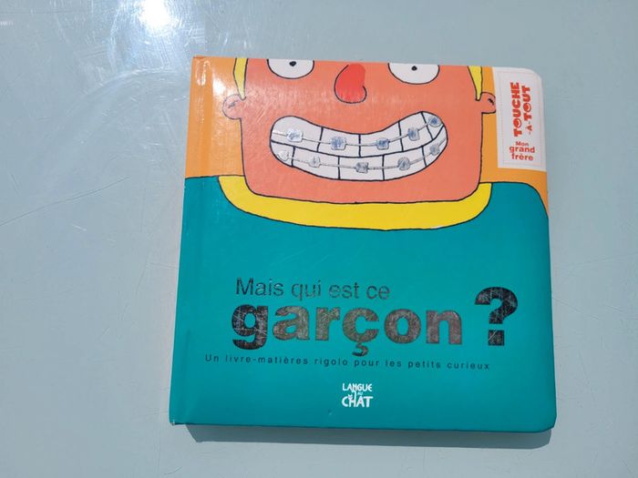 ÉDITIONS LANGUE AU CHAT COLLECTION MON GRAND FRÈRE TOUCHE-À-TOUT MAIS QUI EST CE GARÇON ? Qu'il porte un appareil dentaire, qu'il aie des boutons qui le rendent fou de rage ou trop de gel dans les cheveux, chaque grand frère est exceptionnel... ça méritait bien un bouquin !!! Au fil des pages, les petits curieux découvriront les matières les plus droles ou les plus étonnantes qui caractérisent les grands frères ! Le petit (ou la petite) ne verra plus jamais son ainé du même oeil. Format : 18,80 x 19,00 Couverture un peu abîmée, la texture gel dans les cheveux a un peu vécue sinon en bon état Mes autres livres à toucher : #livreatouchermooglou Mes autres livres enfants : #livreenfantmooglou