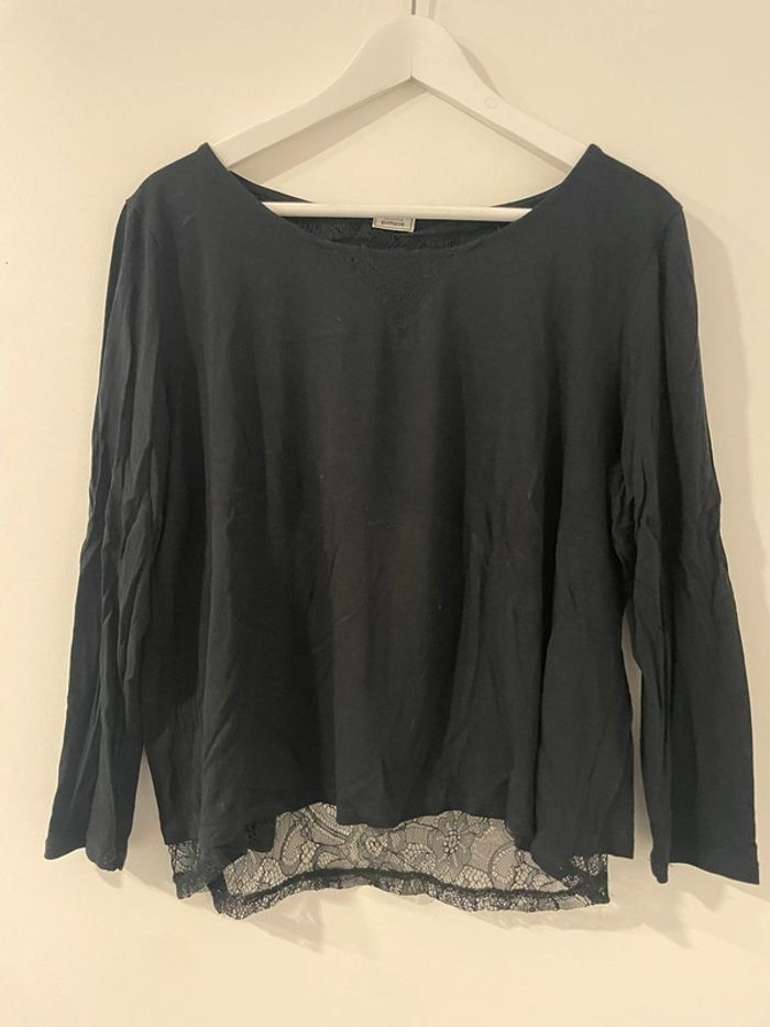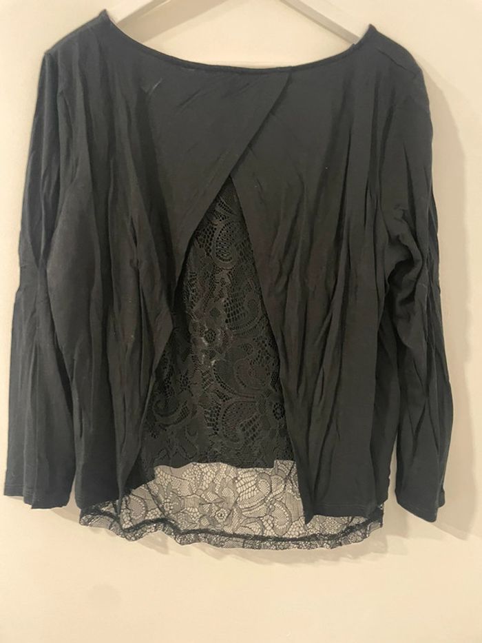 Vend haut manche longue dentelle dans le dos très bon état général. Taille L. Marque Pimkie. Prix 3€