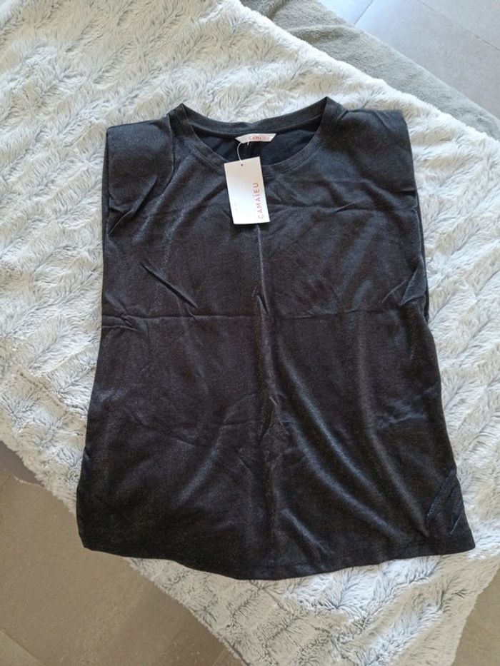 Haut camaïeu noir irisé épaulettes S - photo numéro 1