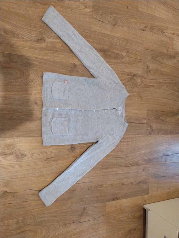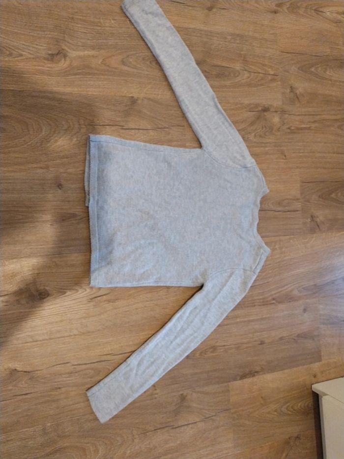 porté qq fois, en trèss bon état, etiquette interieure coupée. cf photo. Gris irisé.