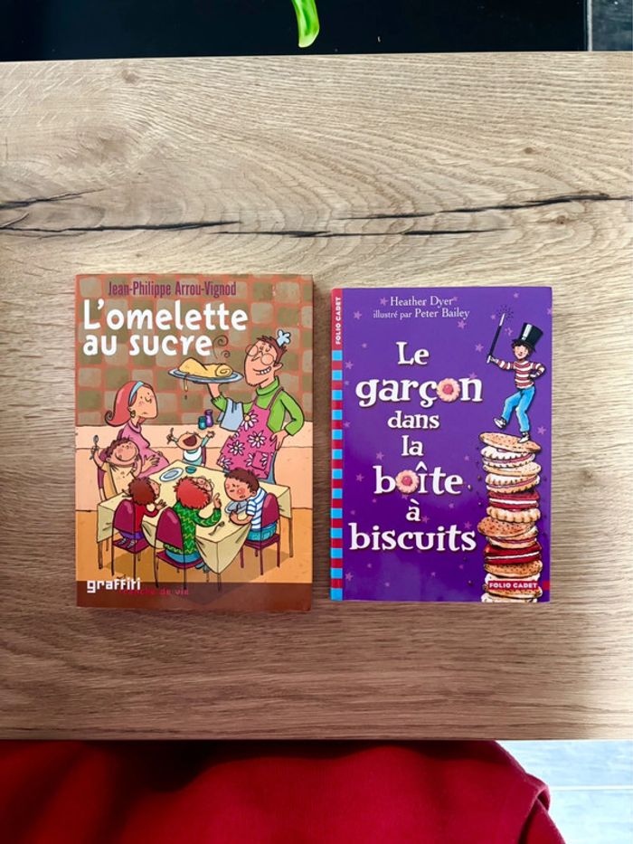 Lot de livres pour enfants : - L’omelette au sucre - Le garçon dans la boîte à biscuits Aux éditions Folio Cadet et Graffiti tranche de vie Ils sont en bon état et idéal pour les enfants qui sont gourmands #livresvvirg5