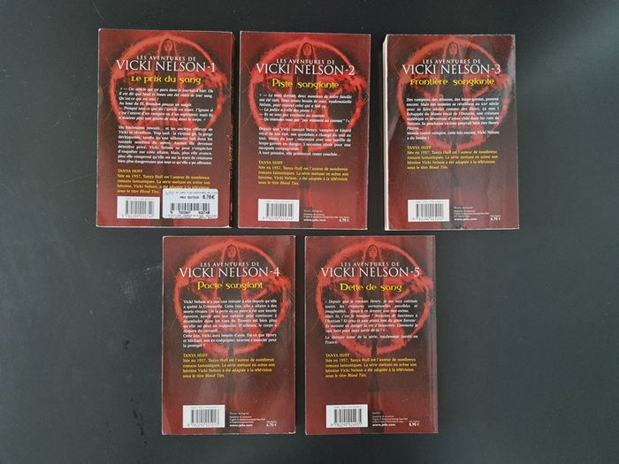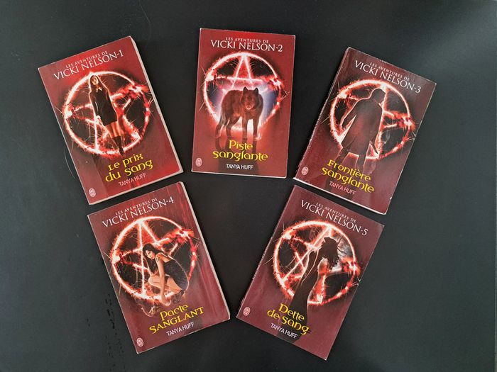 Tanya HUFF Les Aventures de vicki Nelson 1 Le Prix du Sang 2 Piste Sanglante 3 Frontière Sanglante 4 Pacte Sanglant 5 Dette de Sang 10 € la série de 5 tomes Possibilité de remise en mains propres sur Paris et certaines banlieues (Charenton-Le-Pont, Fontenay-sous-Bois, Vincennes, Saint-Mandé...), et de frais de port à 0.99€ quelque soit le poids pour la France (me contacter) vampires#demons#loupsgarous
