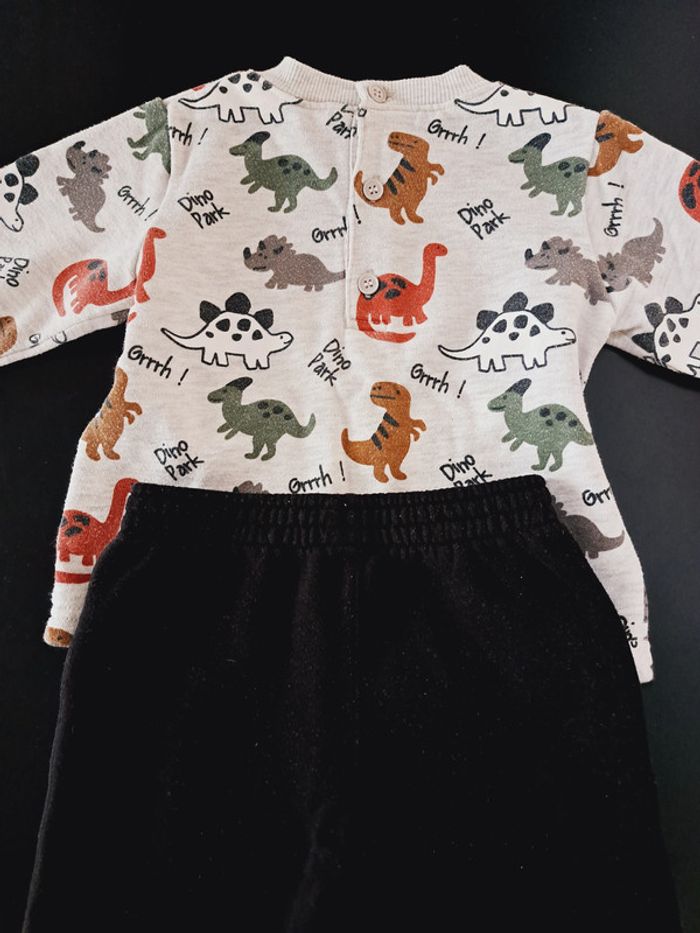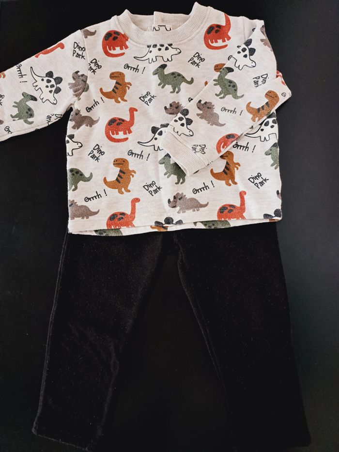 Ensemble avec les chaussettes assorties. Chaud : intérieur polaire. Bas uni noir et haut avec des dinosaures. Acheté chez Carrefour. Dino Park. Grrrh ! Légèrement peluché. 23 MOIS Possibilité de remise en mains propres sur Paris et certaines banlieues (Fontenay-sous-Bois, Vincennes...), et de frais de port à 0.99€ quelque soit le poids pour la France (me contacter)