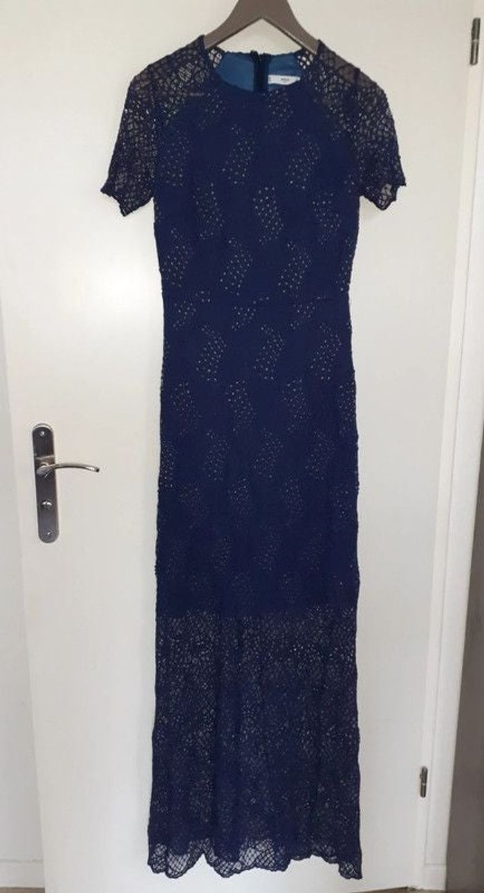 Robe longueur 145 cm environ, manche 29 cm environ, largeur aisselle-aisselle 38 cm environ Extérieur 97 % polyamide 2 % viscose 1 % métallique. Intérieur 100 % polyester Vendue sans ceinture