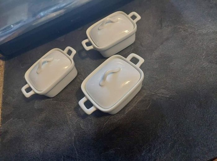Lot 3 mini cocottes céramique blanc TBE - photo numéro 1