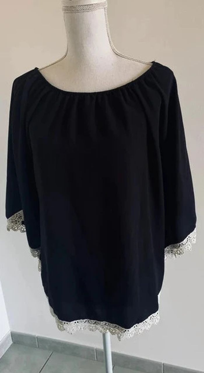 Blouse chic et habillée de couleur noir avec de la dentelle blanche - photo numéro 1