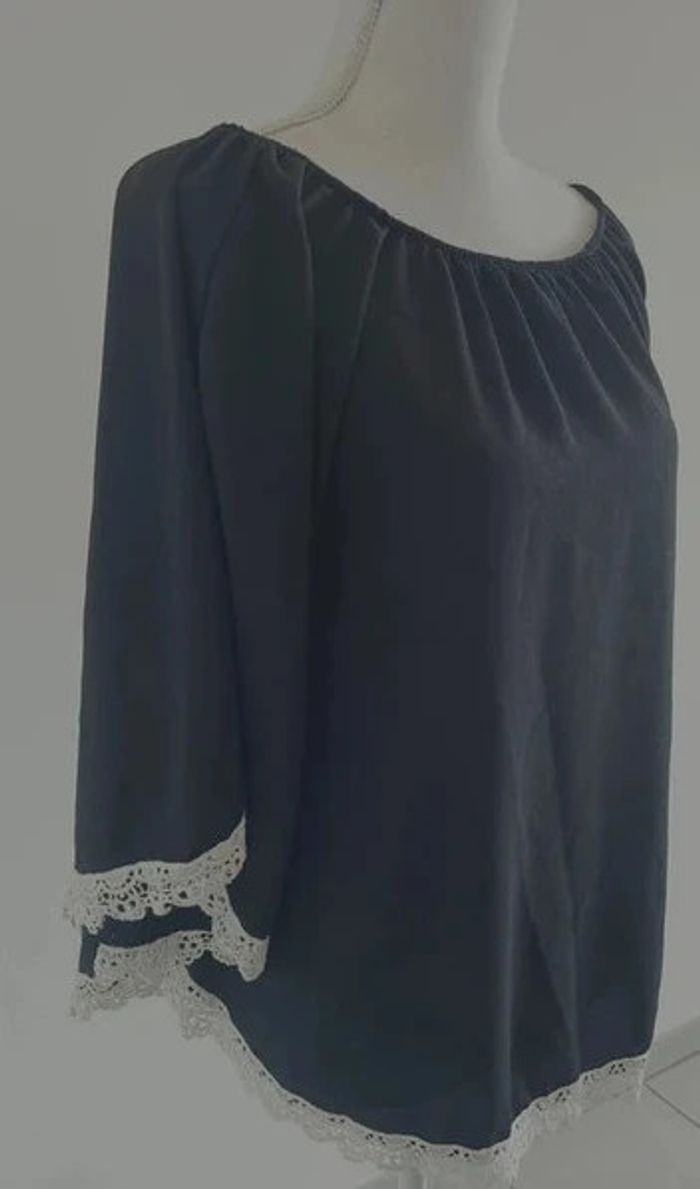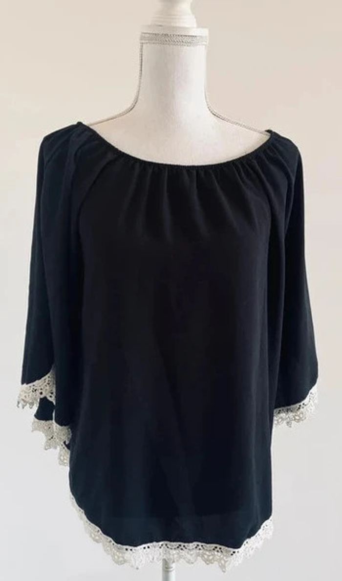 Blouse chic et habillée de couleur noir avec de la dentelle blanche