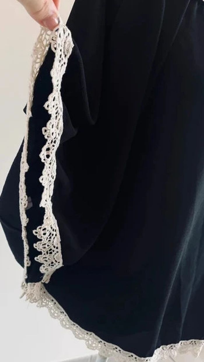 Blouse chic et habillée de couleur noir avec de la dentelle blanche - photo numéro 2