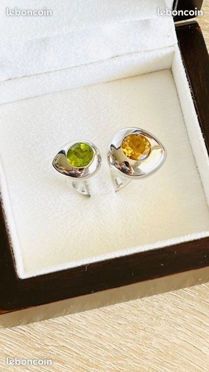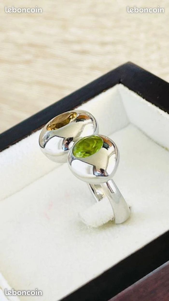 Bague en argent avec des péridots et citrine - photo numéro 1