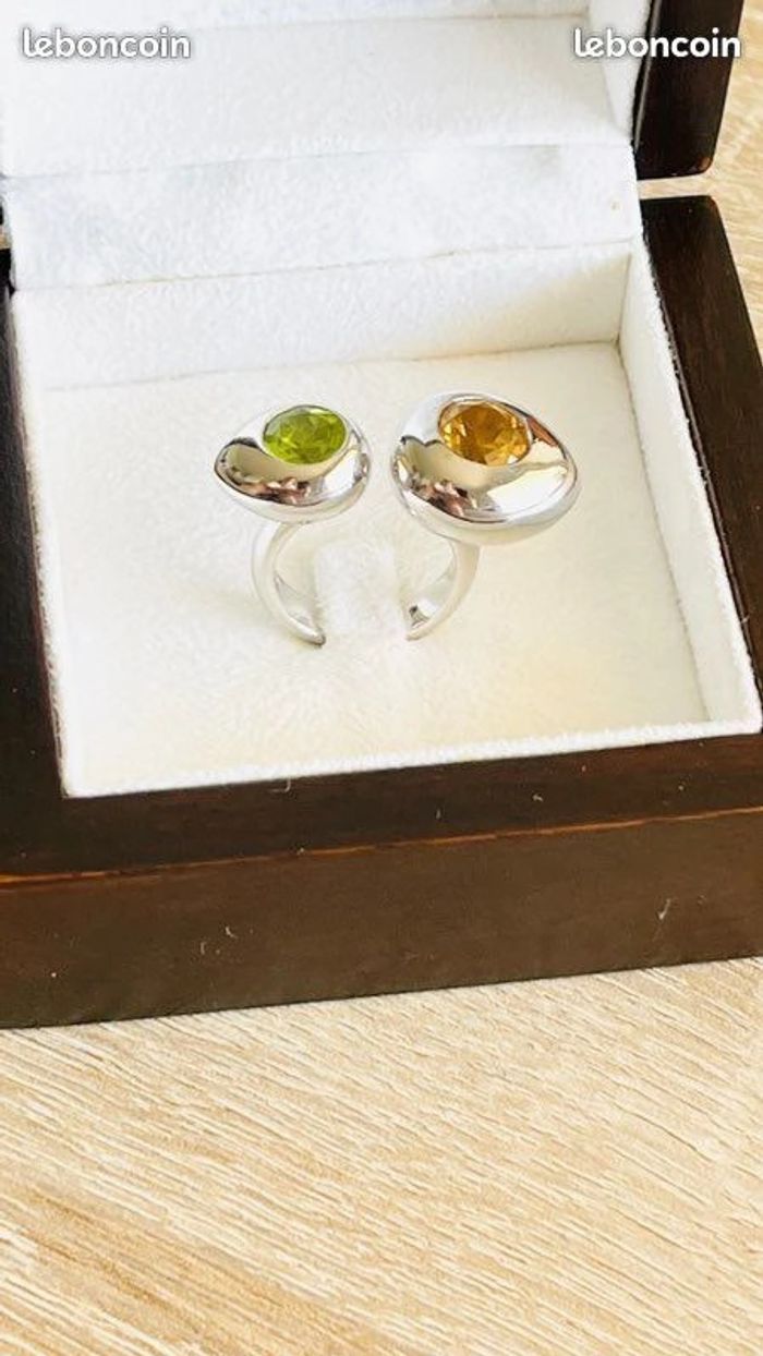 Bague en argent avec des péridots et citrine Taille 50 Produit authentique (poinçon 925 visible) et neuf 115€