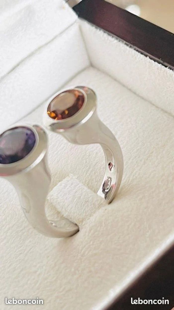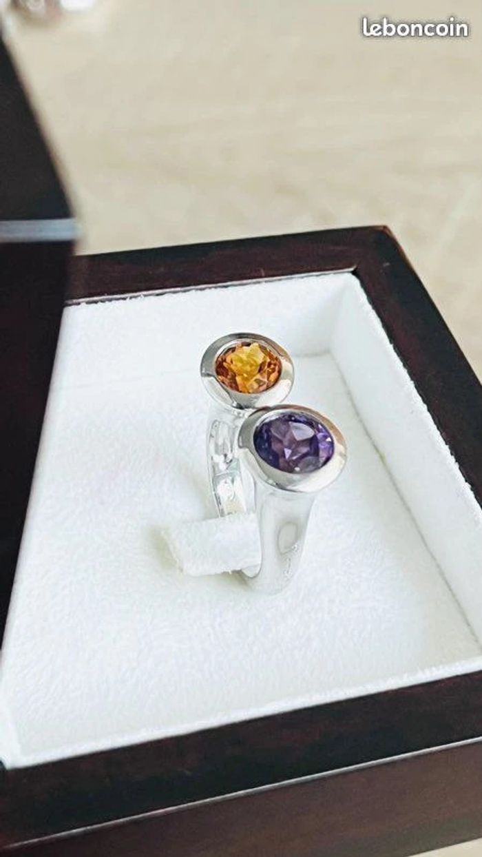 Bague en argent avec une citrine et une améthyste Taille 56 Produit authentique (poinçon 925 visible) et neuf 115€