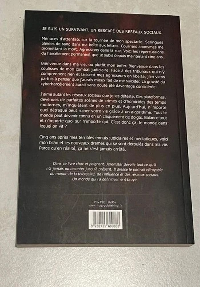 Livre Jeremstar : survivant des réseaux sociaux En parfait état lu une fois il est comme neuf ISBN : 9 782755 699883 Le livre est sorti le 6 octobre 2022 10€