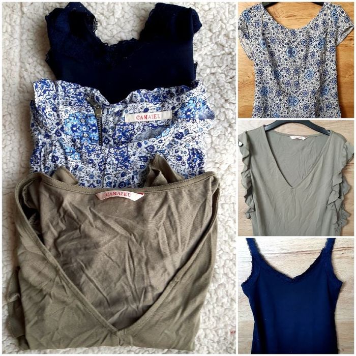 Top bleu Camaïeu Top kaki Camaïeu manches volants( petit défaut déjà présent lors de l'achat à peine visible) Top bretelles Newco dentelle à l'encolure Très bon état