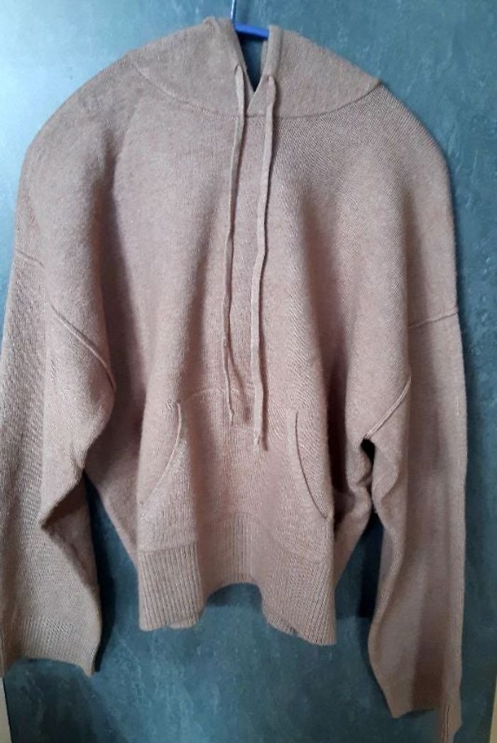 Pull capuche court un peu overside couleur taupe Excellent état