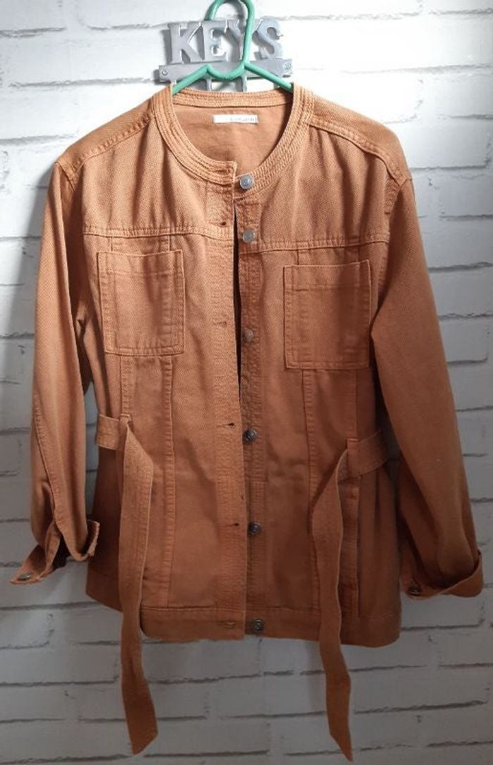 Veste camaieu style saharienne couleur camel Ceinture à la taille 2 Poches intérieure boutonnée Longueur 68cm 100% coton Neuve