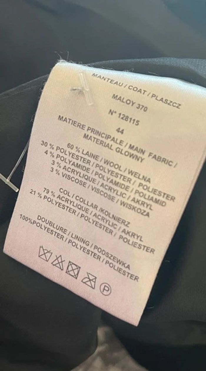 Manteau noir Jacqueline Riu Taille 44 60% de laine En bon état. Les coutures en simili ont été abîmé lors du nettoyage au pressing sinon il est nickel Il a été acheté 250€ en boutique Je le laisse à 30€ #SHOPBYMELTAILLE44