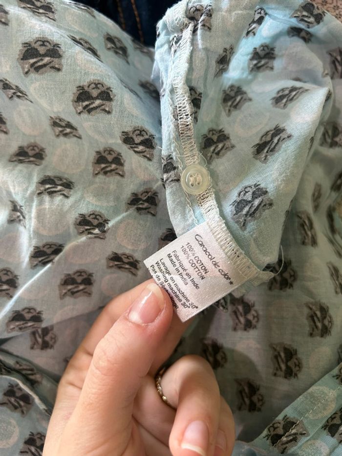 598 – chemise bleue claire à motif "cool cat" (tête de chat avec lunettes de soleil) - photo numéro 12