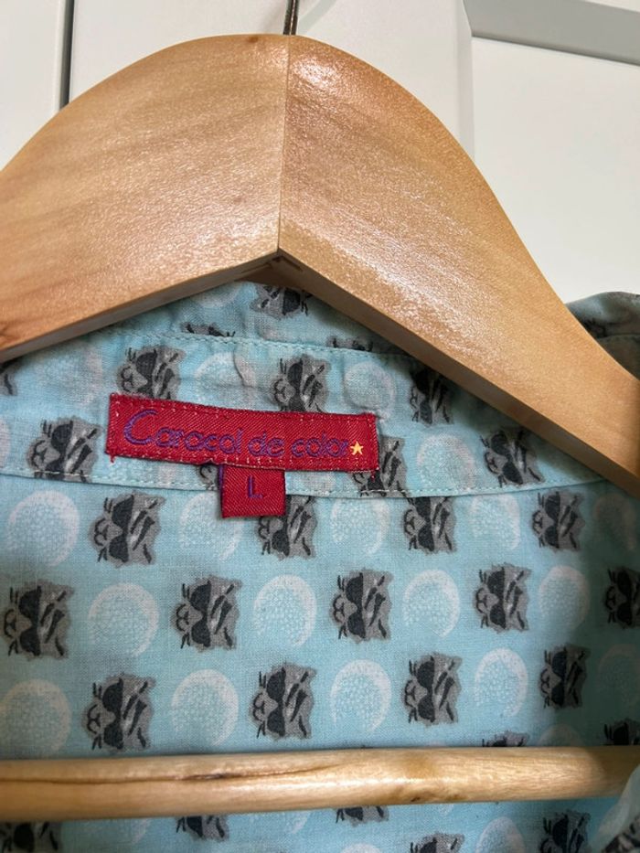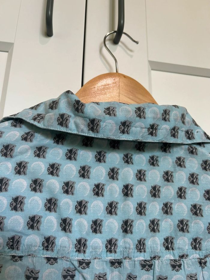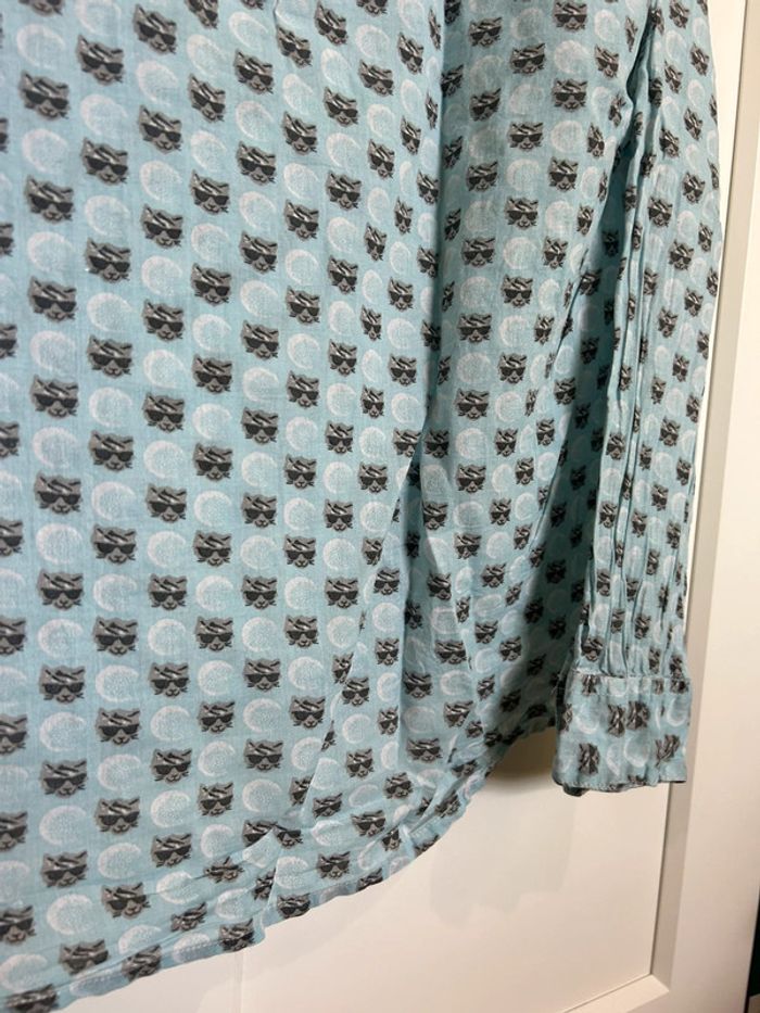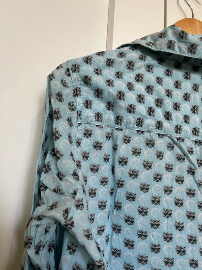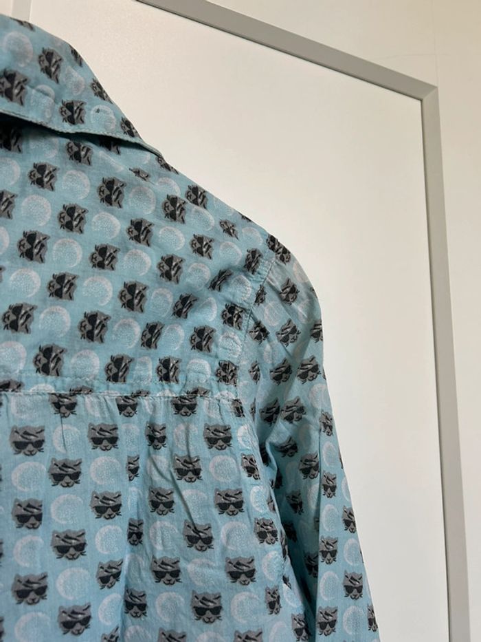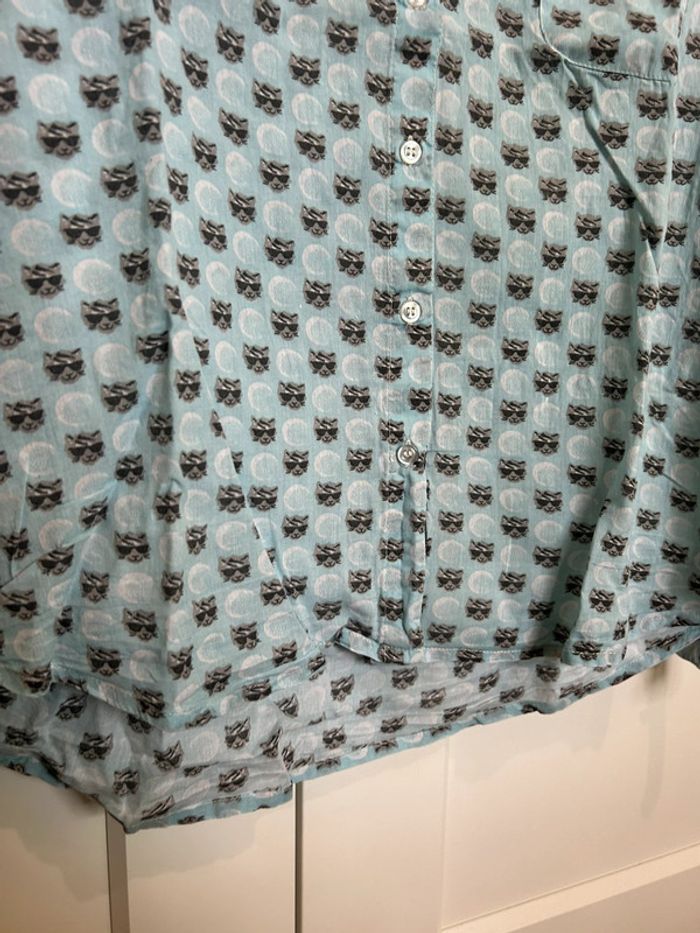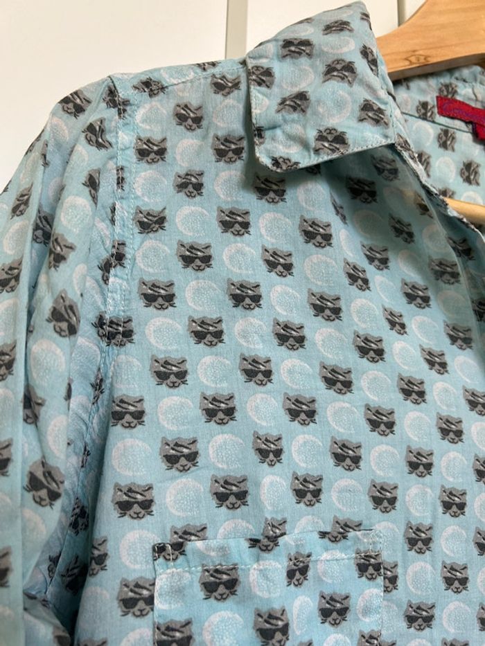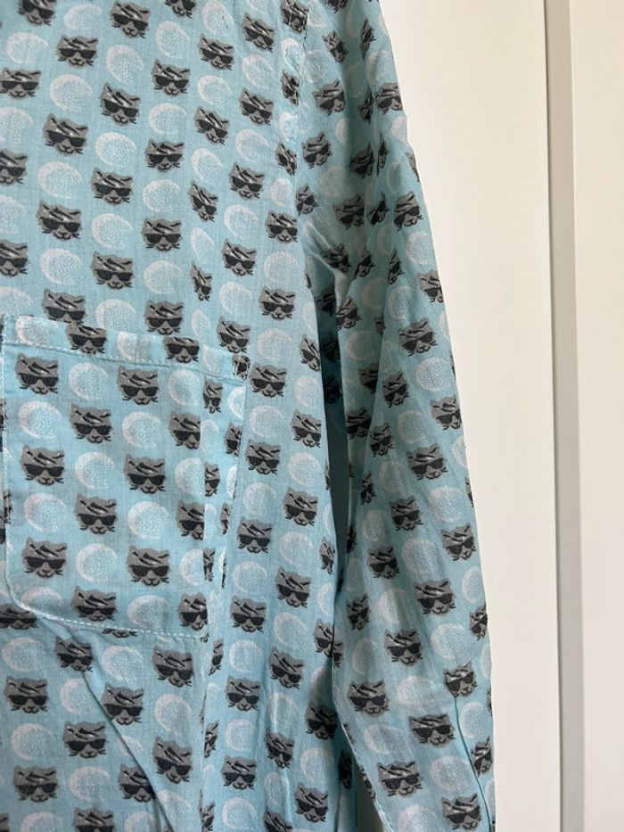 598 – chemise bleue claire à motif "cool cat" (tête de chat avec lunettes de soleil) - photo numéro 14