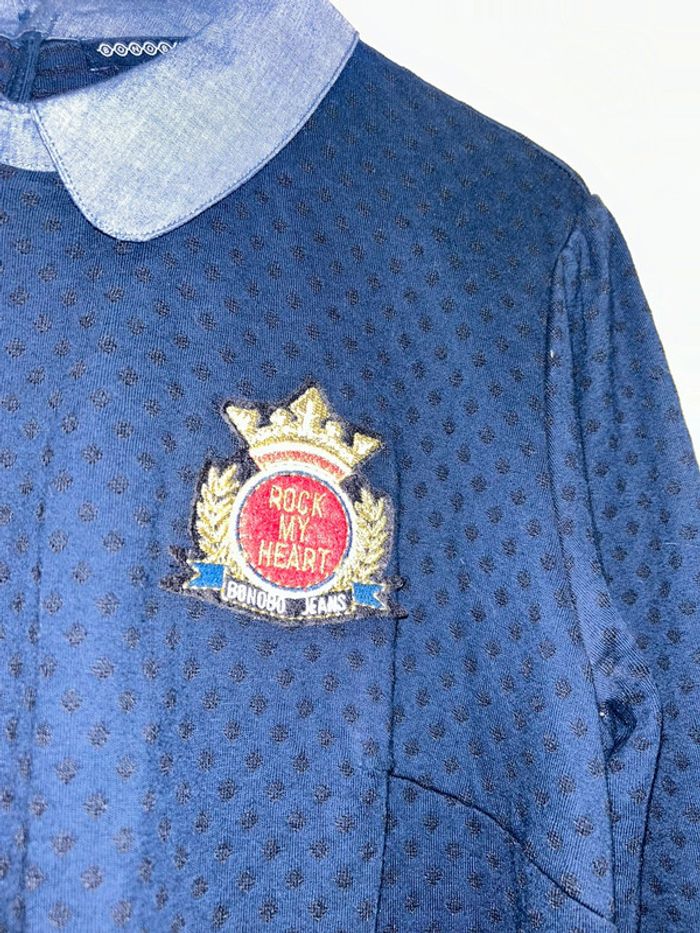 Très jolie et agréable petite robe bleu marine avec détail sur le cœur. Matière : 66% coton et 34% polyester Très peu portée et pas de défaut apparent ! N’hésitez pas à me contacter pour toutes questions ou si vous souhaitez des photos supplémentaires 😉 J’ai mis les frais de port au plus bas pour que vous payez le moins possible l’envoi ☀️ Elle sera envoyée rapidement et très bien protégée 🚚