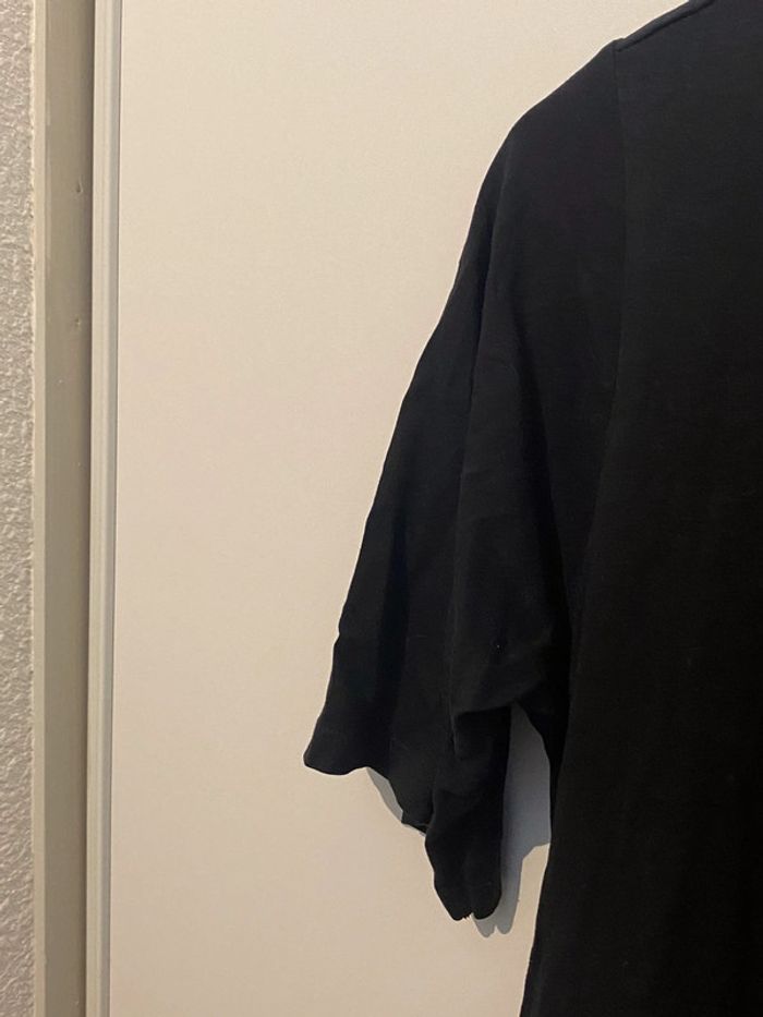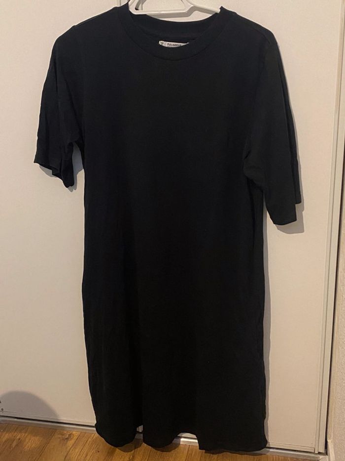 Très jolie et confortable robe noire a manches courtes et poches. Elle ne présente aucun défaut apparent. Elle est vendue lavée, rapidement et très bien protégée. N’hésitez pas si vous avez des questions ou souhaitez des photos portées. Je met le format du colis au plus bas pour que vous payez l’envoi moins cher.