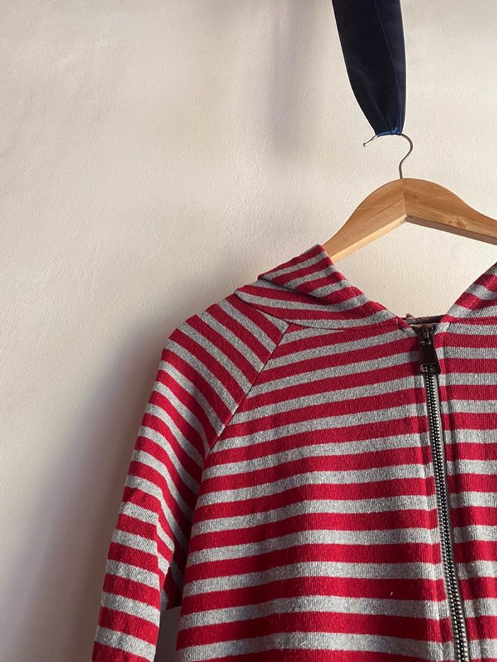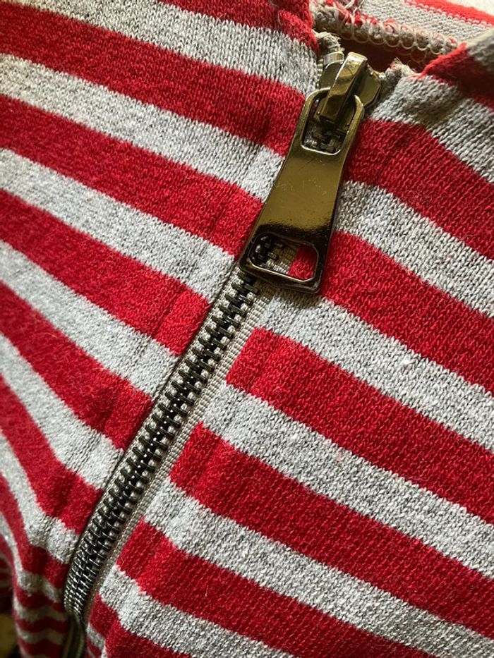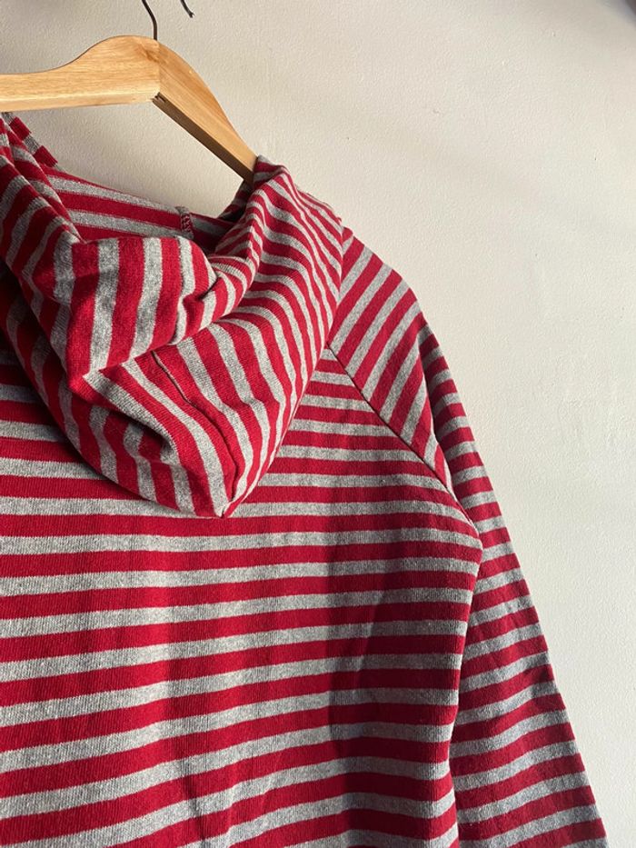 425 - pull à capuche rayé gris et rouge passé composé - photo numéro 5